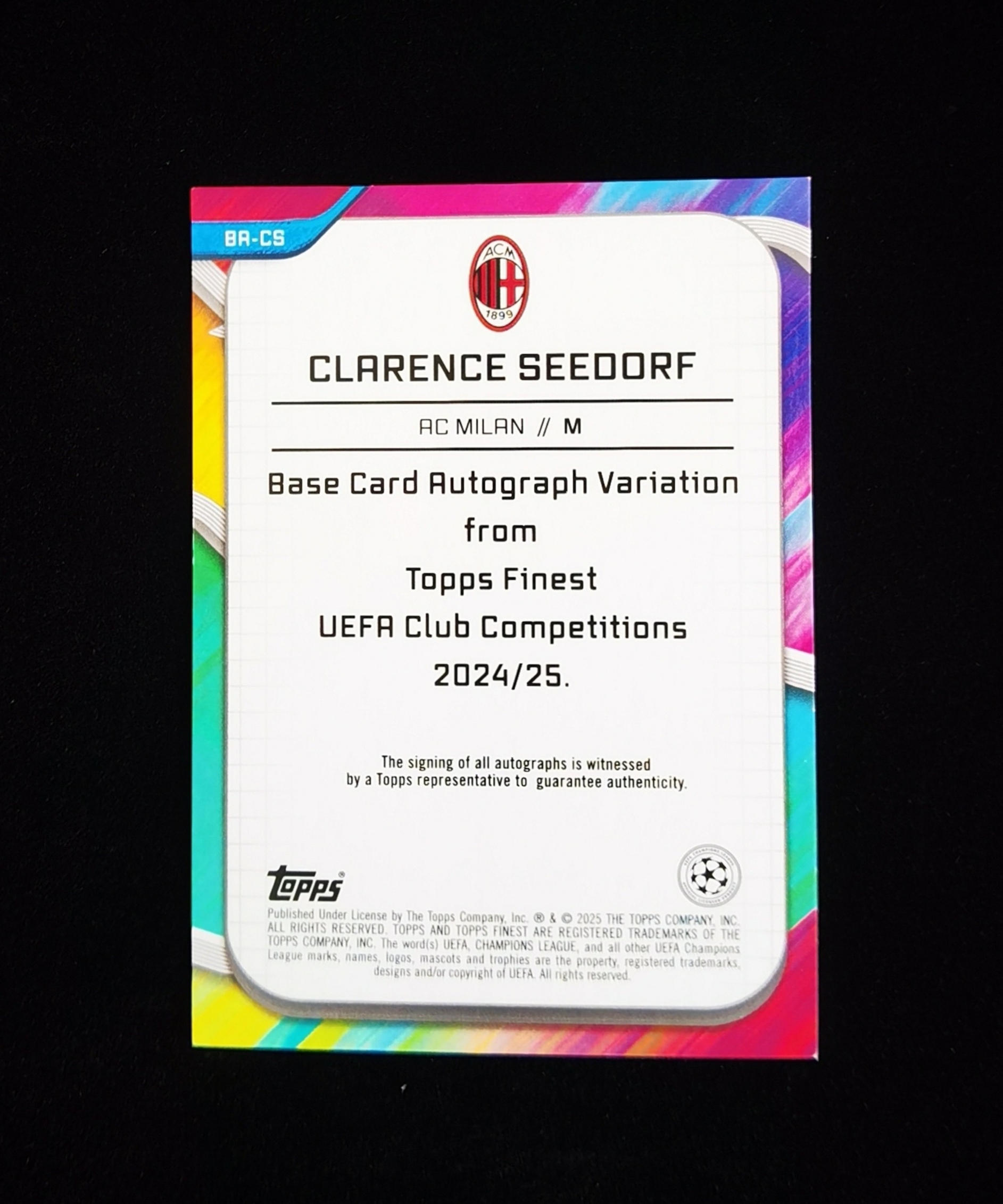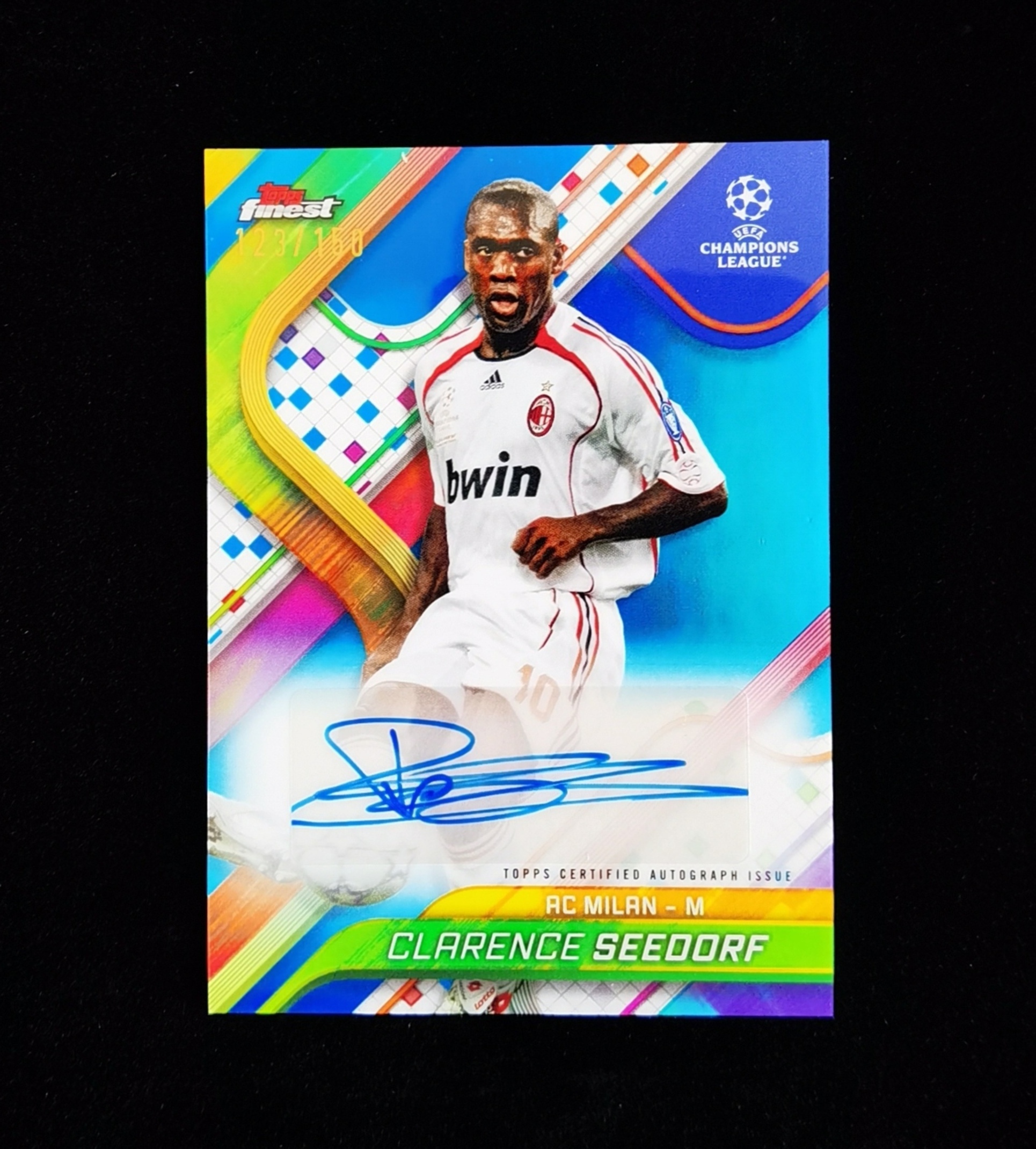2024-25 Topps Finest Clarence Seedorf 欧冠 AC米兰 皇马 荷兰 西多夫 123/150编 签字 蓝折签 完美签 中场大师 传奇名宿 欧冠专业户 实卡精美 专收必备【峥1】
