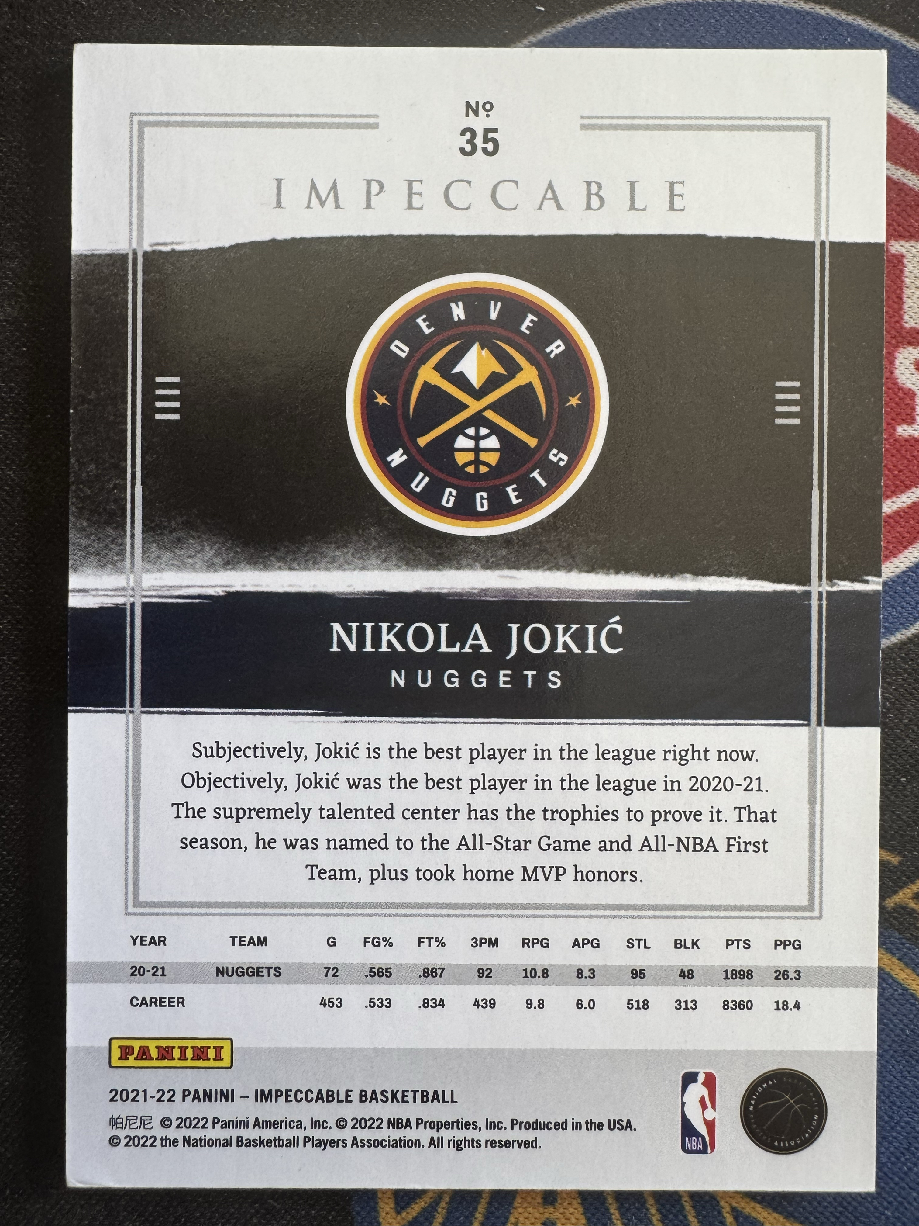 2021-22 Panini Impeccable Nikola Jokic RC 小真金 尼古拉约基奇 五花肉 约老师 双重肖像 75编 银版 瑕疵如图 银平行 base