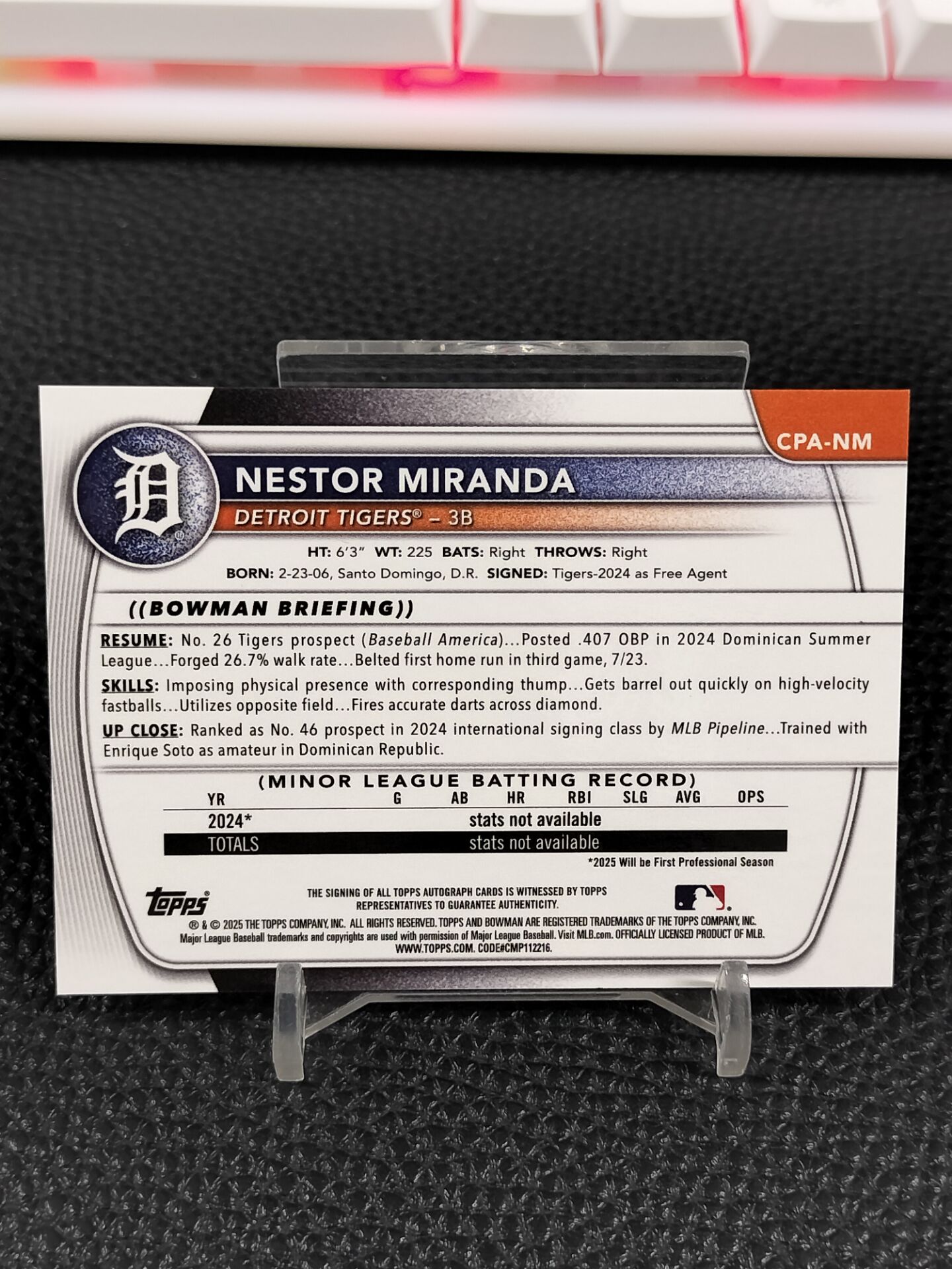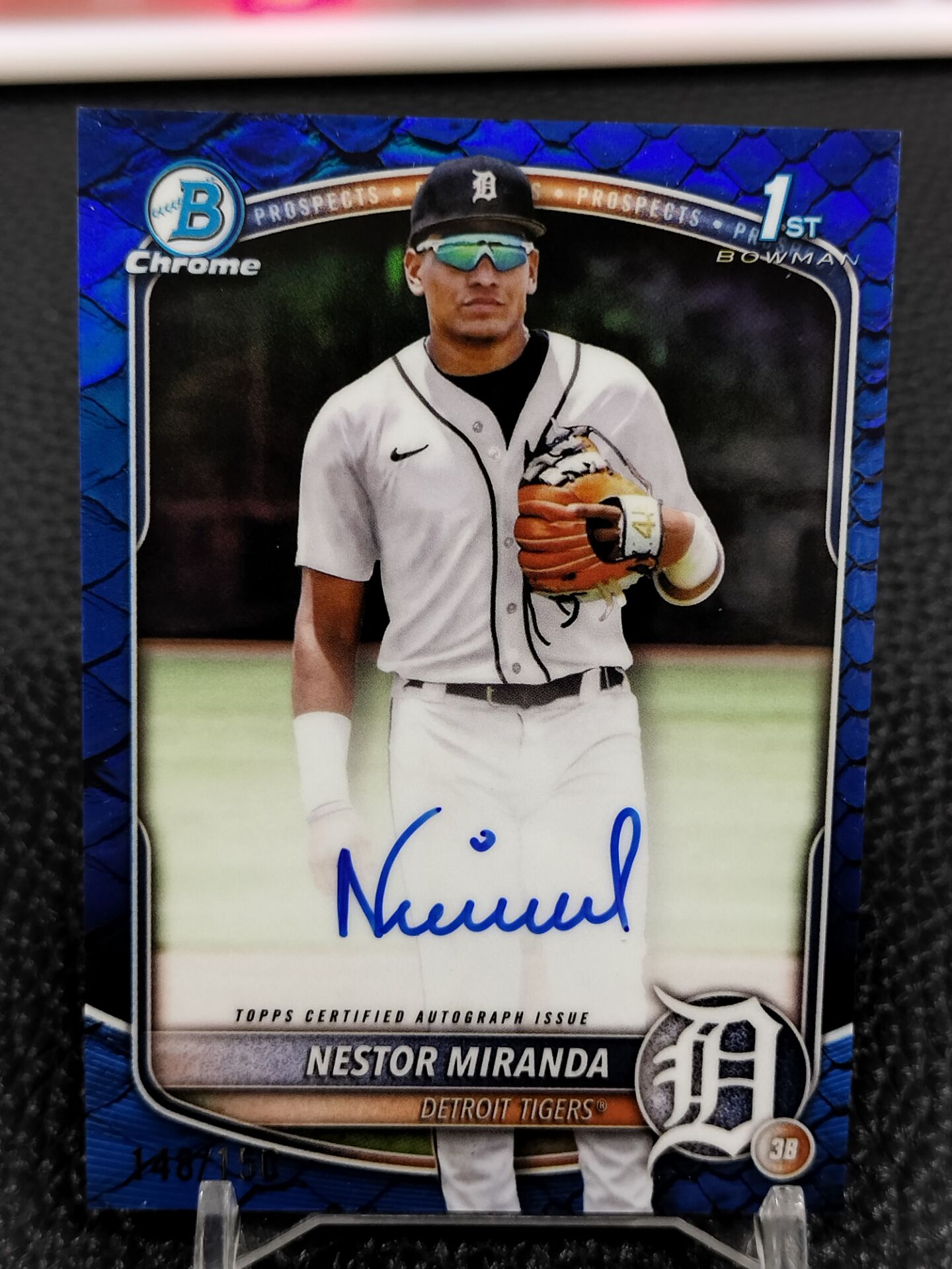 【浩行拍卖 截标预付82%】2025 topps Bowman Chrome nestor miranda 棒球 底特律老虎 内斯托 米兰达 签字 卡签 1st 新秀 rc 蓝蛇皮折 折射 148/150编 瑕疵看图「迟雪」1126h01飛