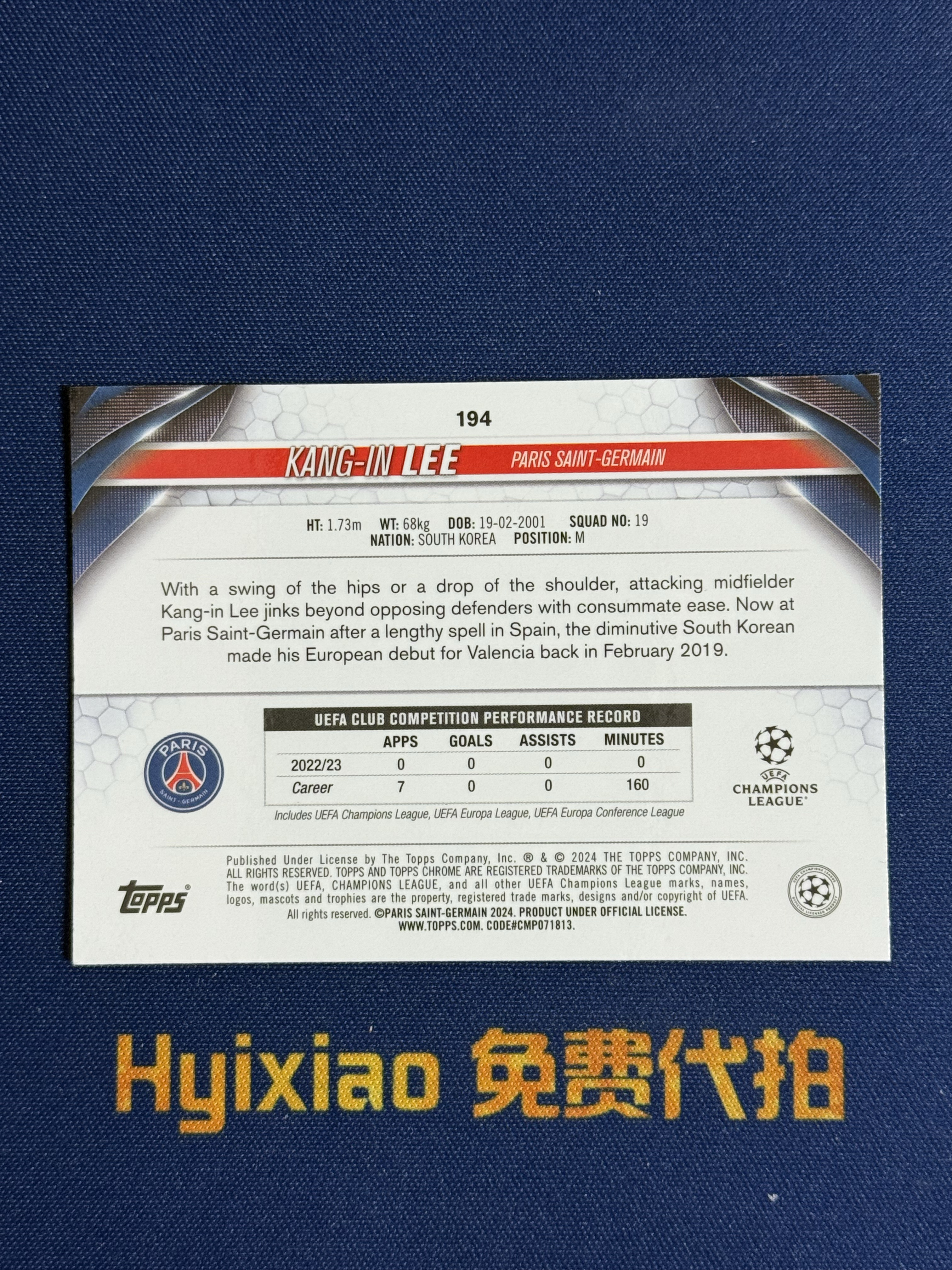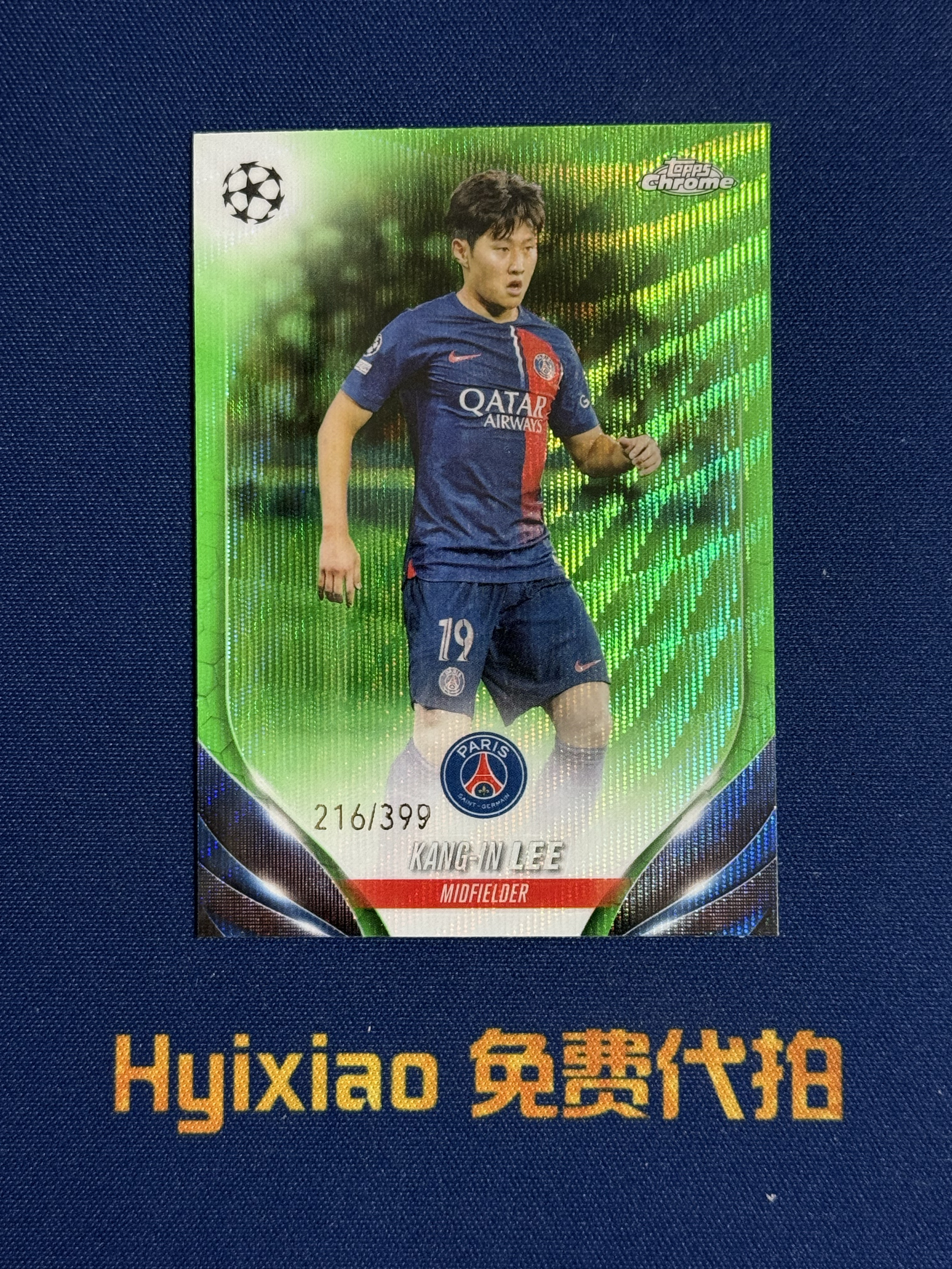 2023-24 Topps Chrome Lee Kang In (拍前看描述)法甲 巴黎圣日耳曼 李刚仁 399编 青绿折 李康仁 瓦伦西亚 马略卡 韩国 欧冠 卡品如图 收藏必备 lhq11