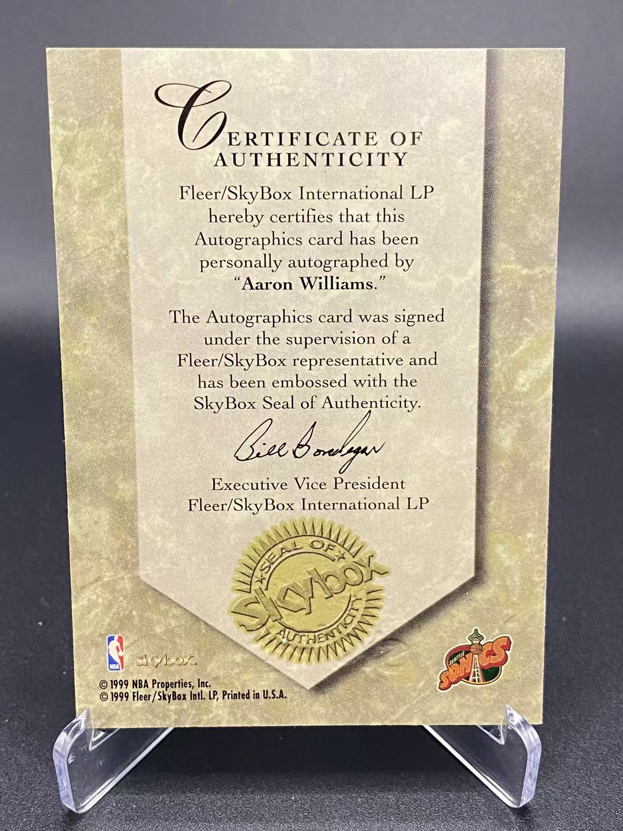 1999 【六六代卖 预付快速回款】 SKYBOX Aaron Williams 阿隆 威廉姆斯 超音速 卡签签字 瑕疵如图(PSY)