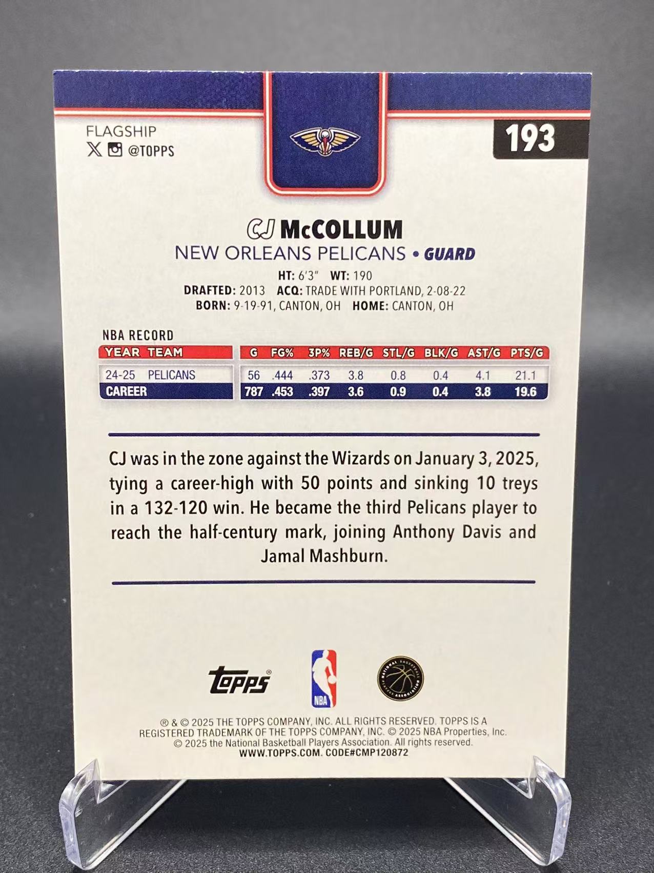 2025 【六六代卖 预付快速回款】 TOPPS CJ McCollum CJ 麦科勒姆 鹈鹕 1592/2025编 BASE(PSY)