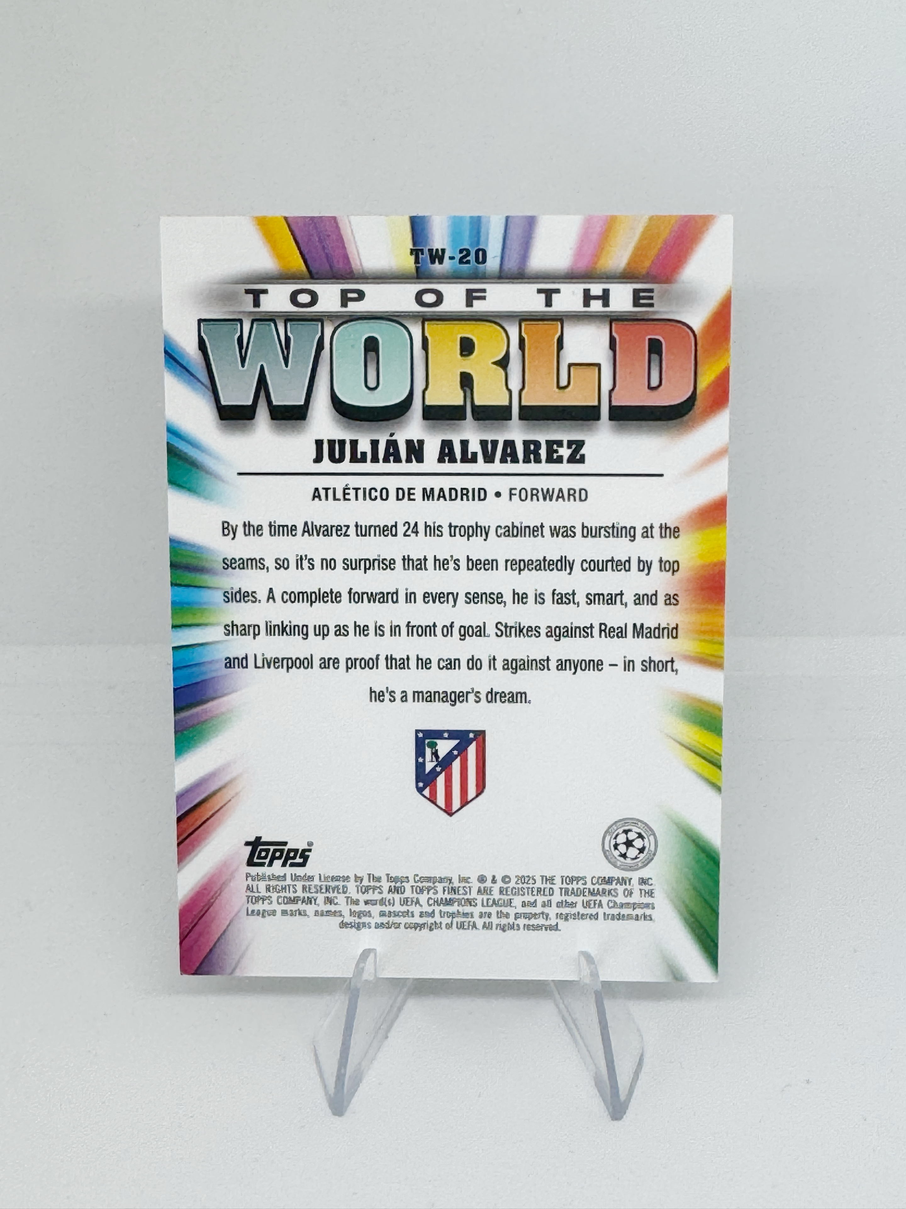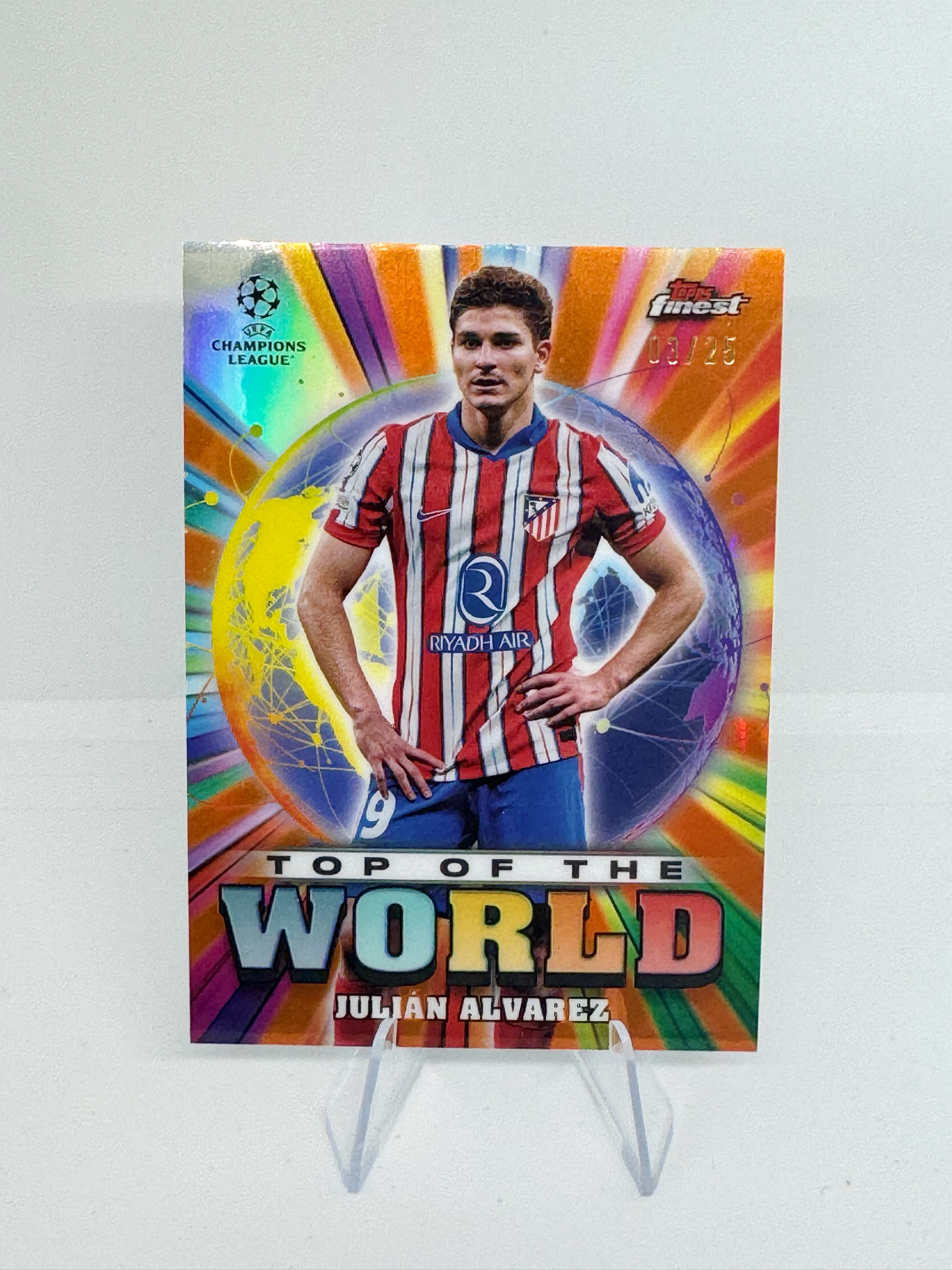 2024-25 Topps Finest Julián Álvarez 欧冠 FINEST 马竞 马德里竞技 阿尔瓦雷斯 /25编 超低编 世界之巅特卡 SP 橙折 曼城 阿根廷 小蜘蛛 豪门猎物