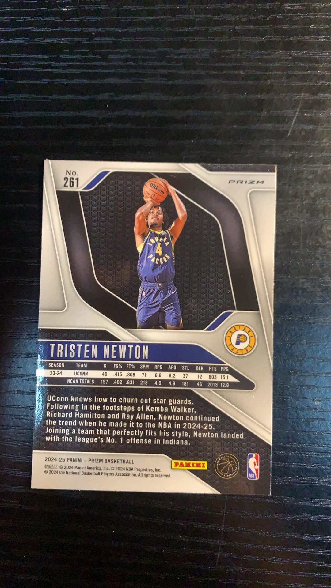 2024-25 Panini Prizm Tristen Newton RC  PZ 步行者 新秀 特里斯坦 牛顿 正银折 折射 于此