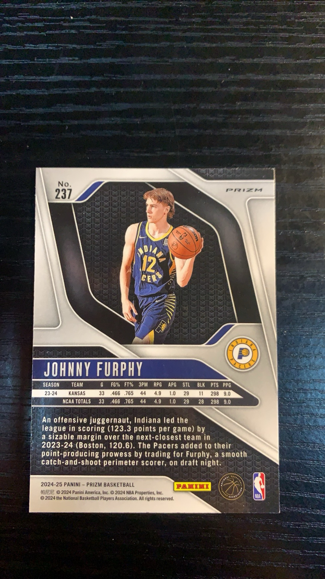 2024-25 Panini Prizm Johnny Furphy RC PZ 印第安纳步行者 新秀 rc 约翰尼 弗菲 正银折射 卡品如图 于此