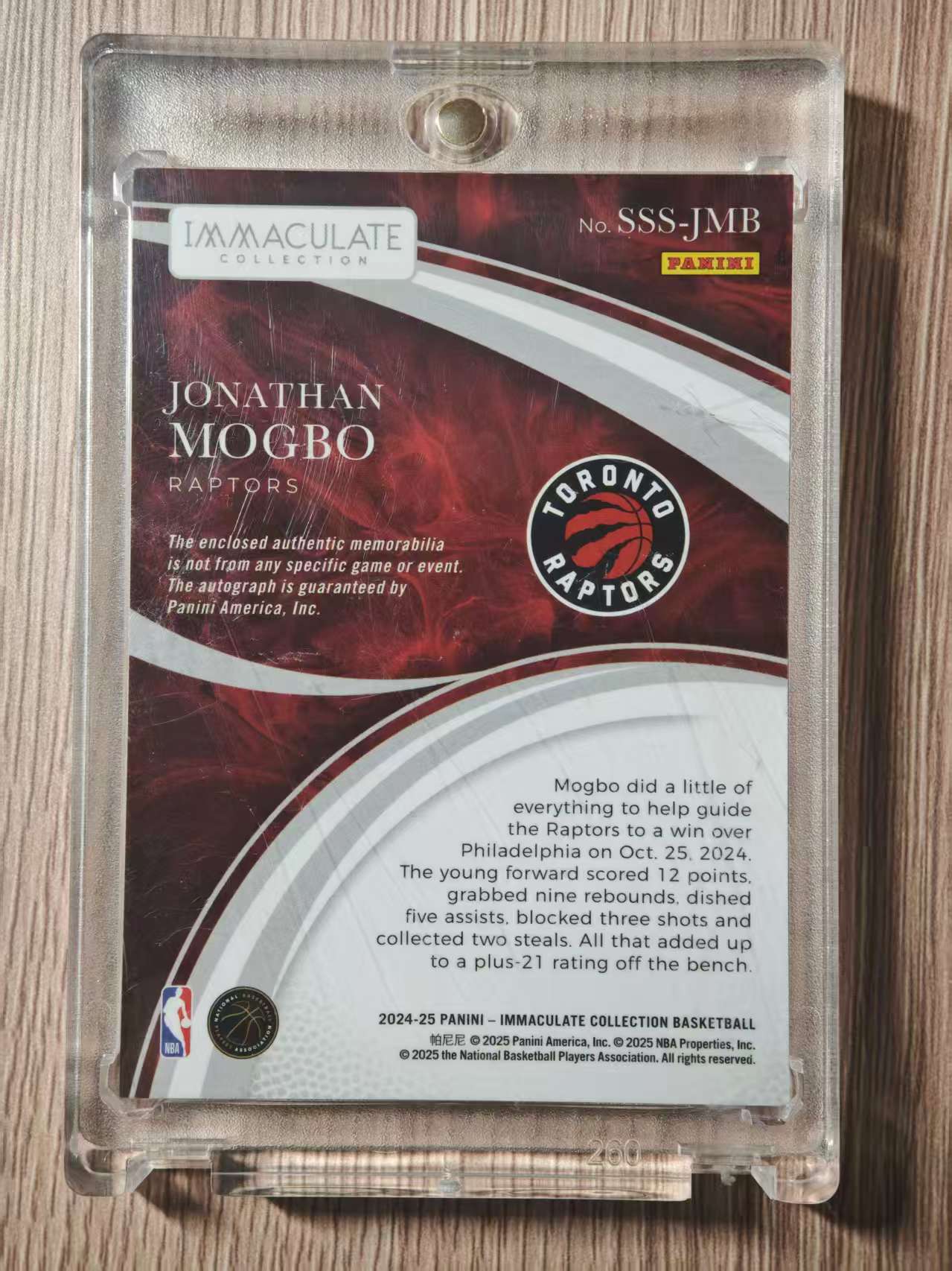 2024-25 Panini Immaculate Jonathan Mogbo RC 猛龙 新秀RC 乔纳森莫戈博 新秀球鞋切割签字 Sneaker 鞋签 卡签 49编