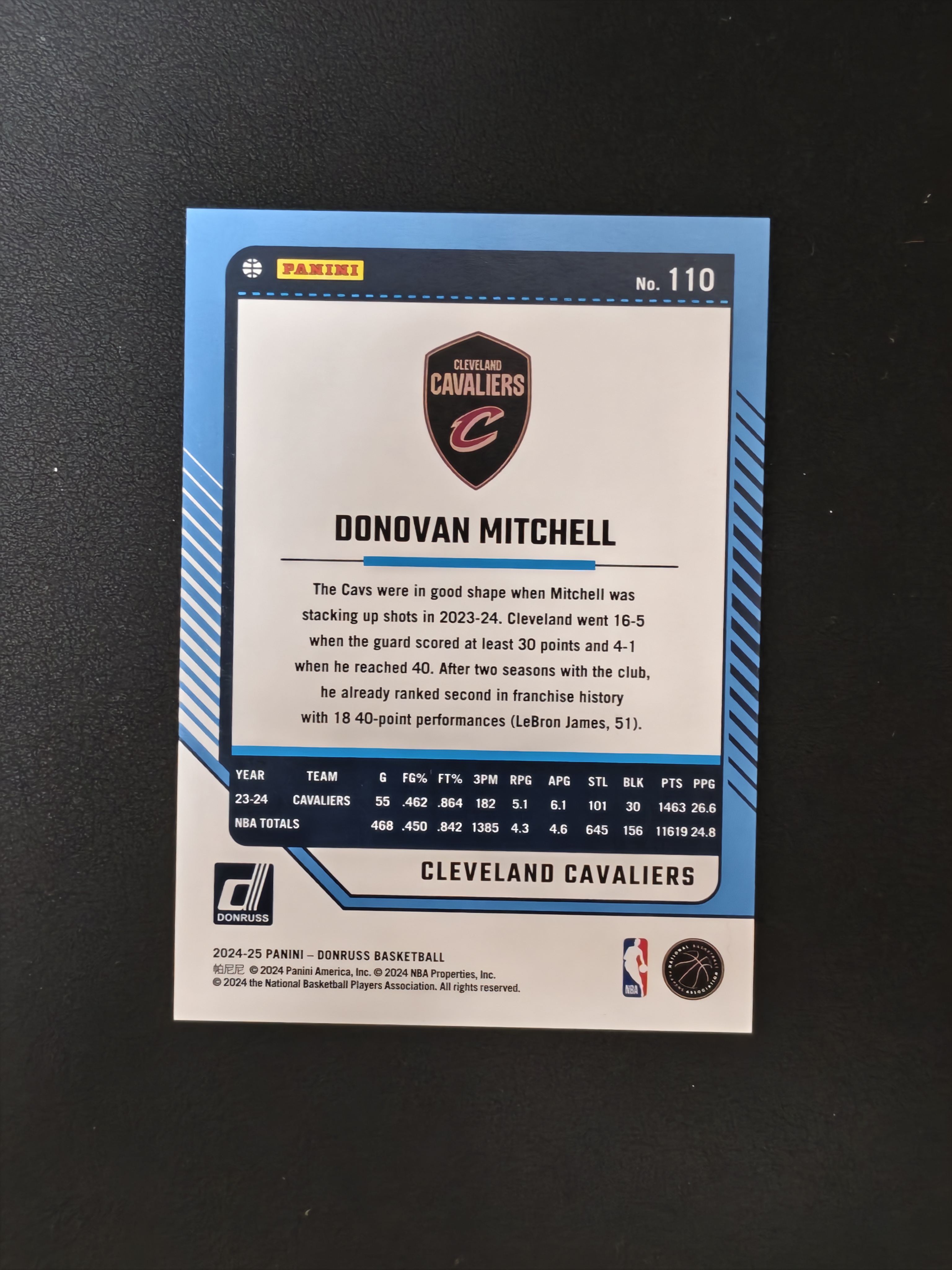 《拍多少回款多少》2024-25 Panini Donruss Donovan Mitchell 杜蕾斯op 骑士 多诺万 米切尔 99编 特卡 红佛光 折射 卡品如图