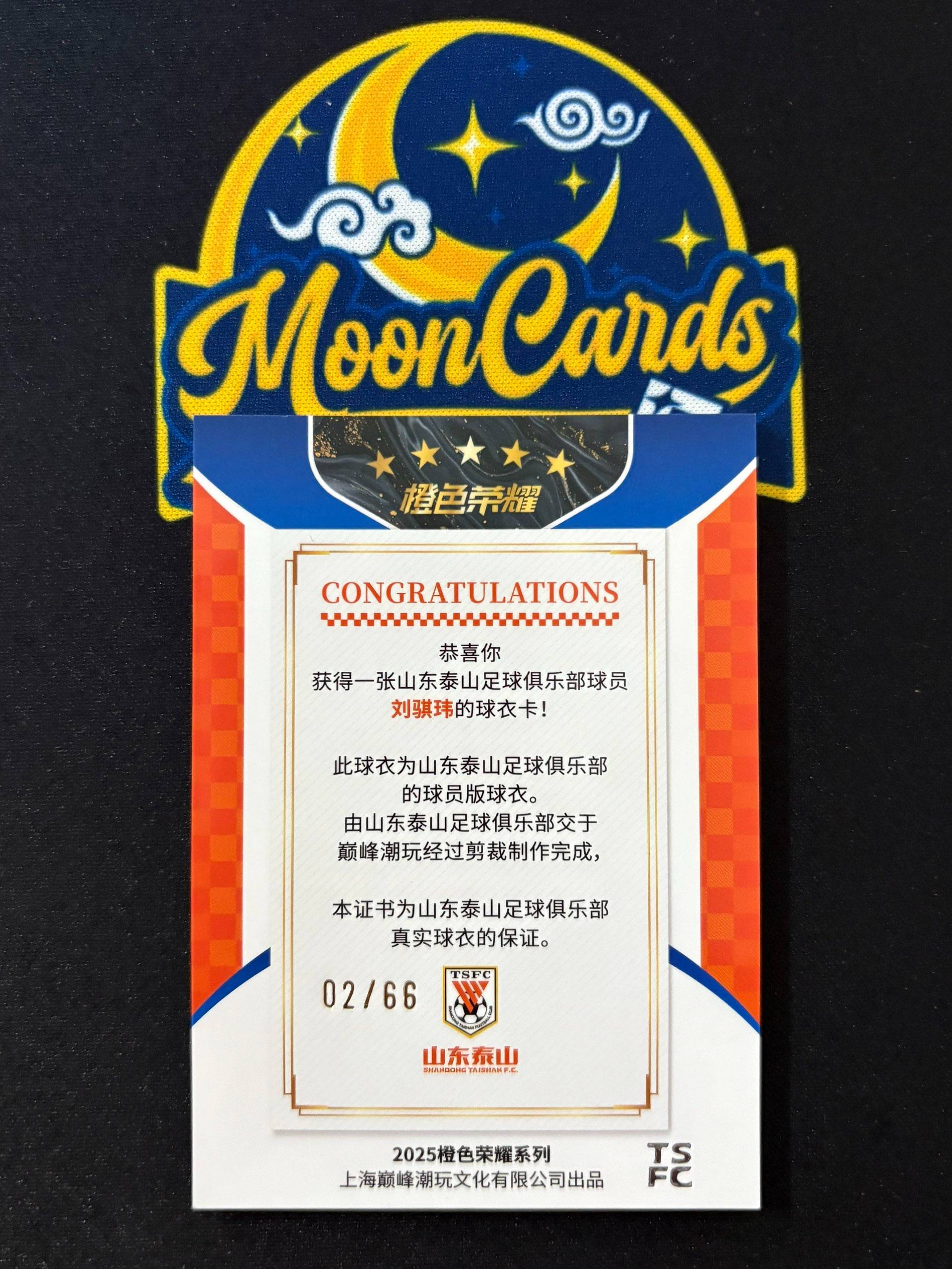 【梦卡拍卖】2025 巅峰潮玩 橙色荣耀 泰山队盒 山东鲁能 刘骐玮 球衣切割 物料 AU 02/66编 #DD# 百亮眼镜