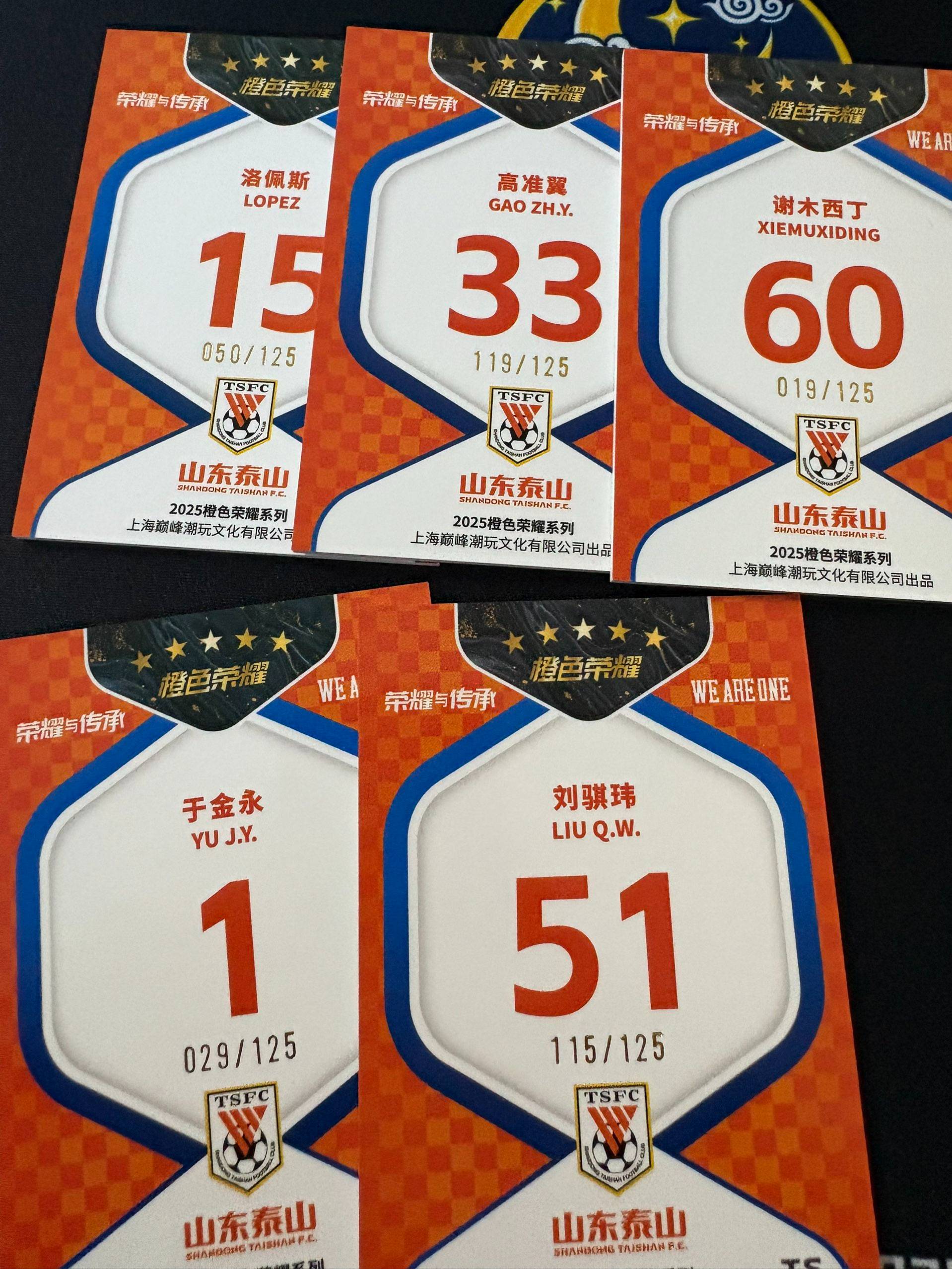 【梦卡拍卖】2025 巅峰潮玩 橙色荣耀 泰山队盒 山东鲁能 5张lot 洛佩斯 高准翼 谢木西丁 刘骐玮 于金永 /125编 #DD# 百亮眼镜