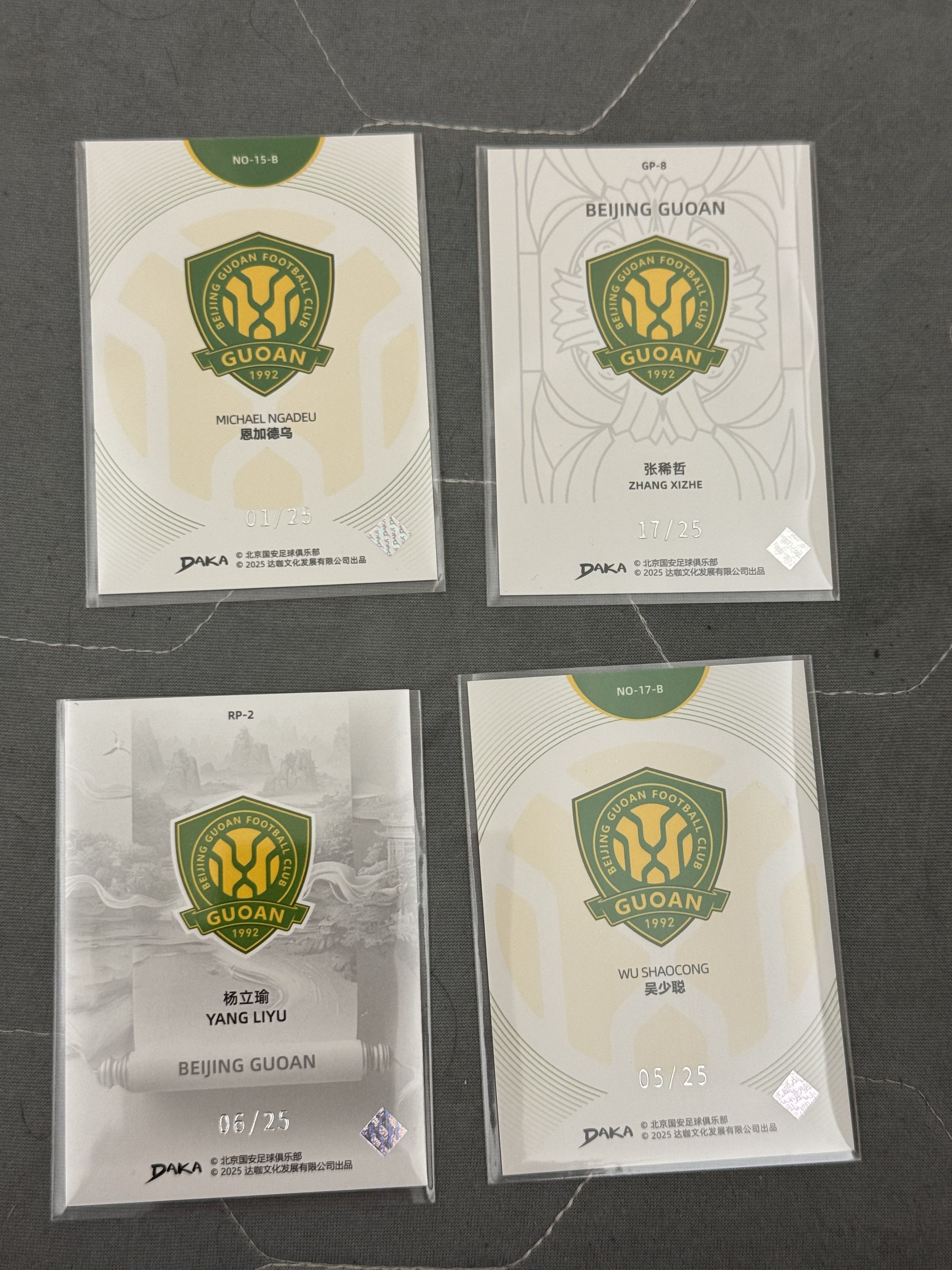 2025 DAKA 北京国安足球俱乐部 打包4张 恩加德乌 首编 张稀哲 吴少聪 杨立瑜 25编 金折 base 带编 达咖 北京国安队盒 不保卡品 爱维权的勿拍 s7