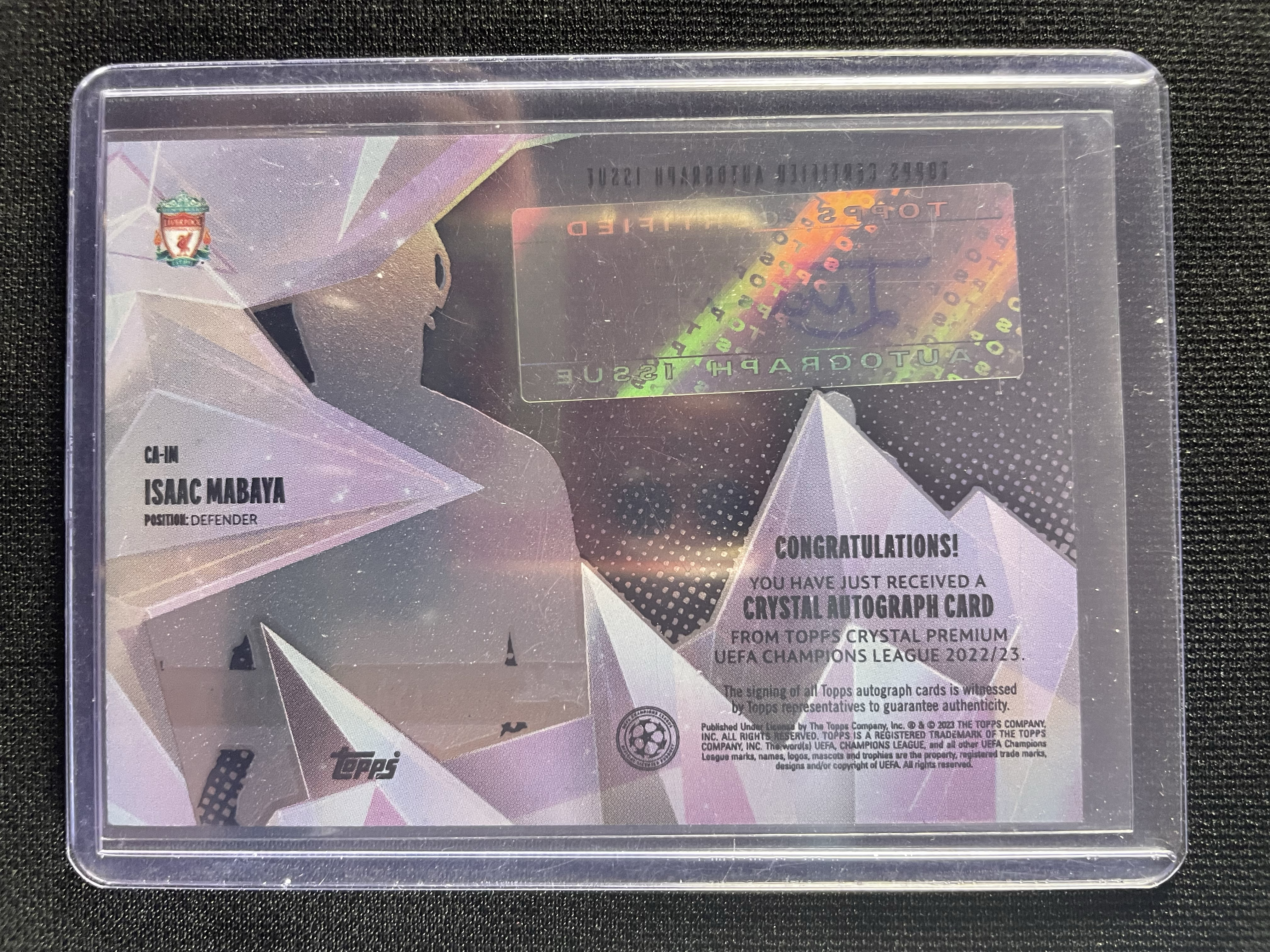2022-23 Topps Crystal Premium RC Auto 艾萨克 马巴亚Isaac Mabaya 利物浦 Liverpool FC 英格兰 England 水晶系列 新秀 签字卡