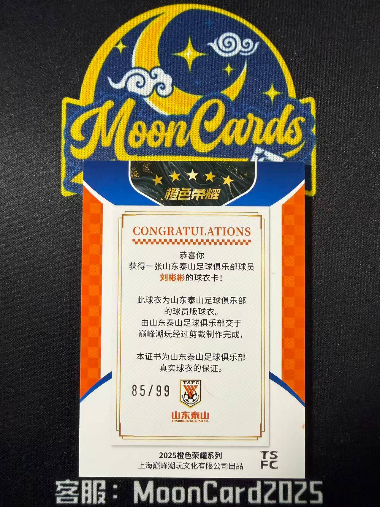 【梦卡拍卖】  2025 巅峰潮玩 橙色荣耀 泰山队盒 刘彬彬 球衣物料切割 99编 细节如图 #Ci# EEthannn