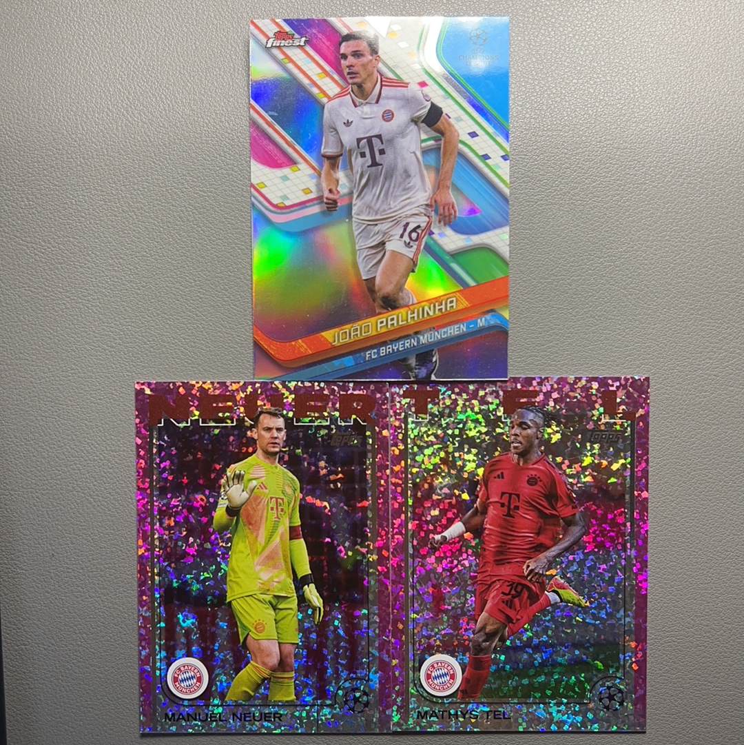 2024-25 Topps chrome Manuel Neuer 欧冠 UCC 拜仁慕尼黑 队套 Palhinha 帕利尼亚 诺伊尔 Tel 特尔 热刺 粉碎冰折 3张lot打包 不保卡品