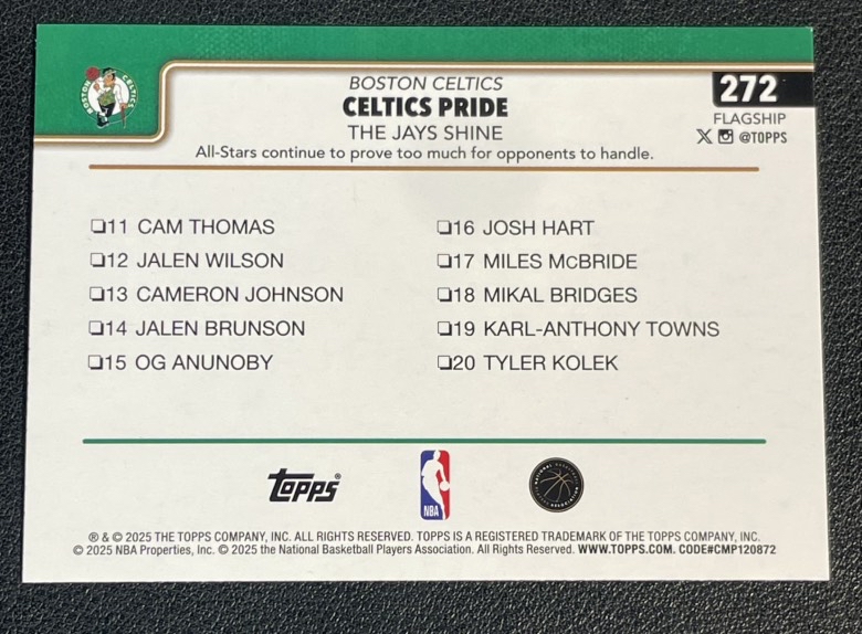 2025 Topps NBA Flagship Jayson Tatum 229 杰森 塔图姆 杰伦 布朗 凯尔特人 多人选图 折射 铜折 2025编 微瑕如图 卡品如图 pink