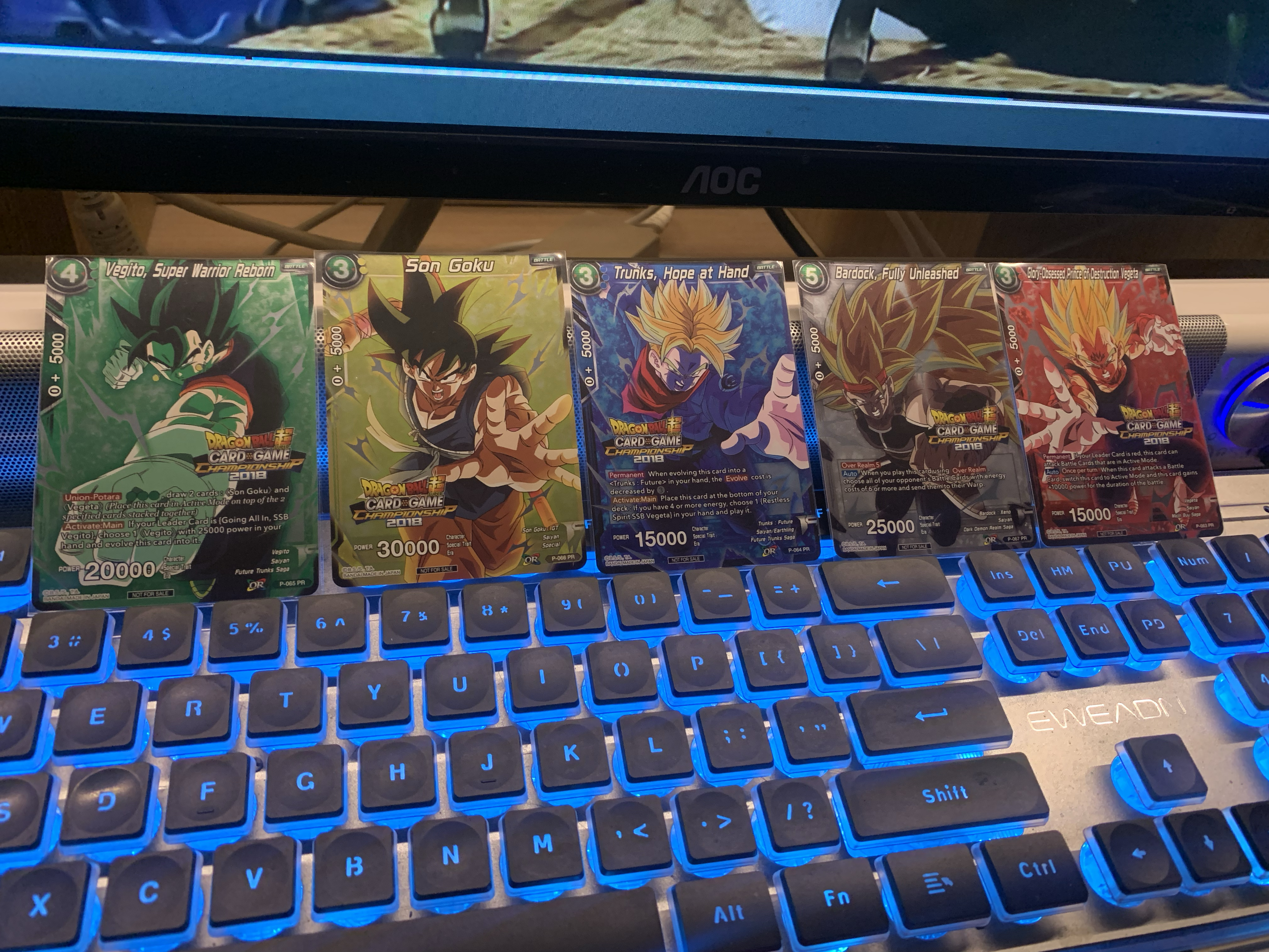 2018 龙珠融合世界 XY 高罕 en 万代 Drangon Ball 龙珠 美版 英文版 2018冠军赛 特典卡 一套5张一起拍 爆闪 实卡非常好看 自拆出上膜上夹 卡品有保障 收藏必备