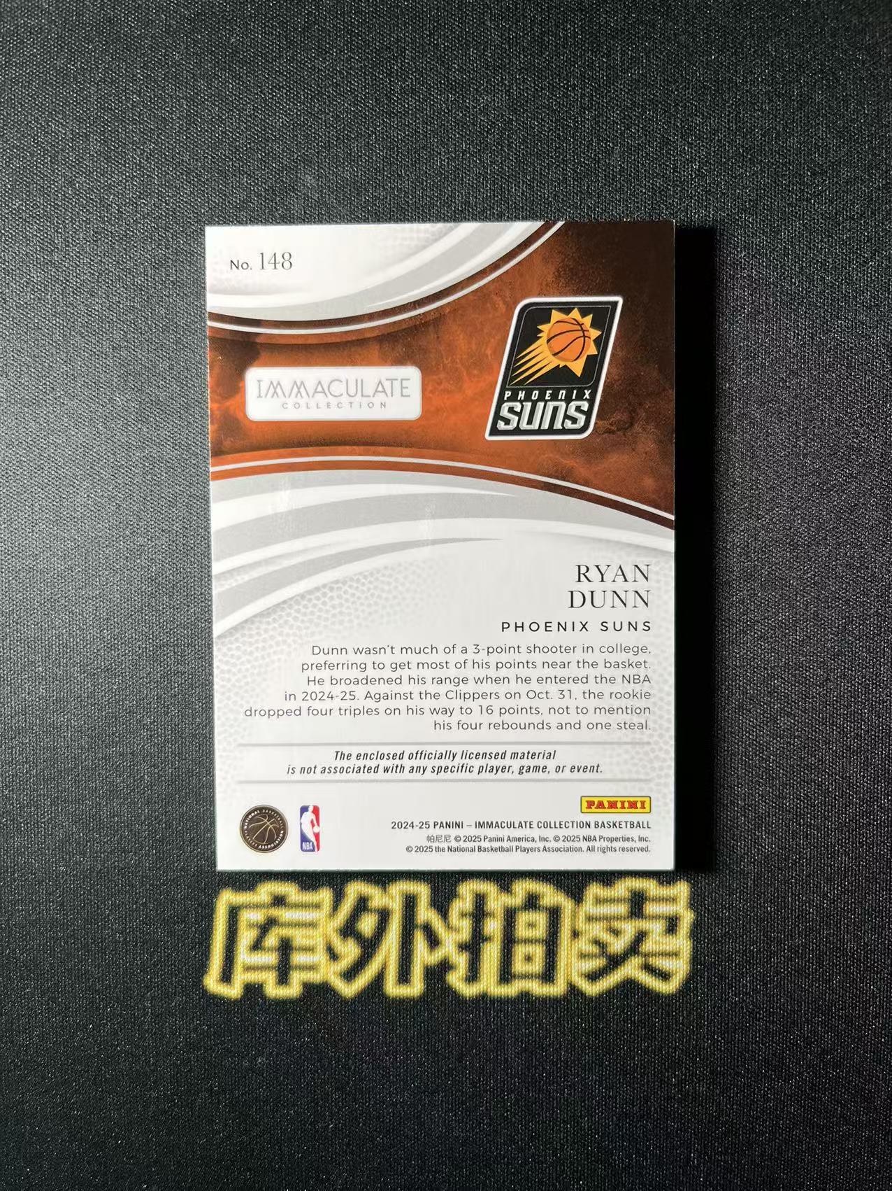2024-25 Panini Immaculate Ryan Dunn RC 太阳 瑞安 邓恩 爱咪咪系列 新秀 49编 球衣 物料 Patch 暴力切割 蓝平行 23/49编 卡品如图 BL