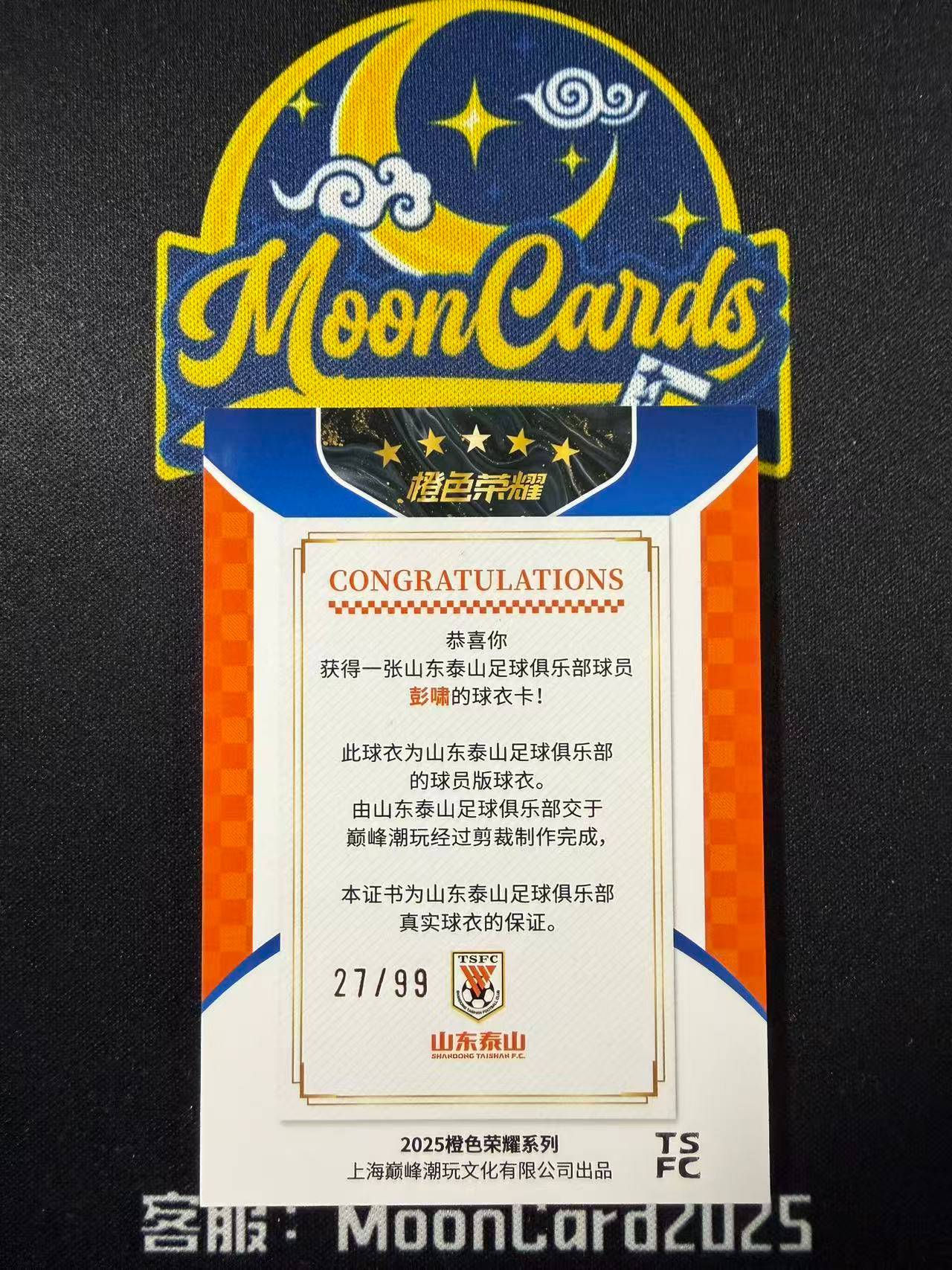 【梦卡拍卖】 2025 巅峰潮玩 橙色荣耀 泰山队盒 彭啸 球衣物料切割 99编 细节如图 #Ci# 一郎