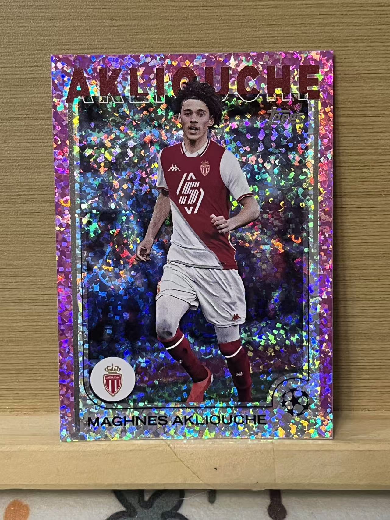 2025 Topps UEFA maghnes akliouche 阿克利乌什 摩纳哥 粉碎花折 银折 ucc 欧冠 实卡精美 收藏必备 LZ5