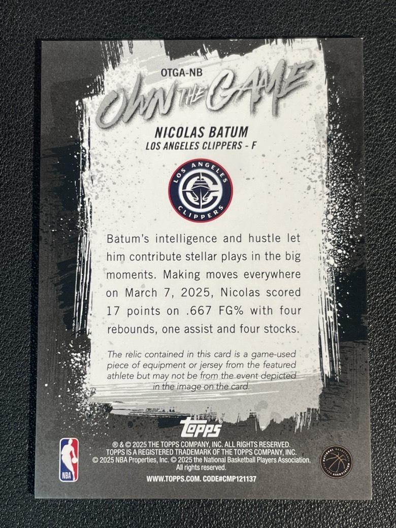 2025 Topps NBA Flagship Nicolas Batum 263 尼古拉斯 巴通姆 快船 掌控比赛 球衣 物料 微瑕如图 卡品如图 pink
