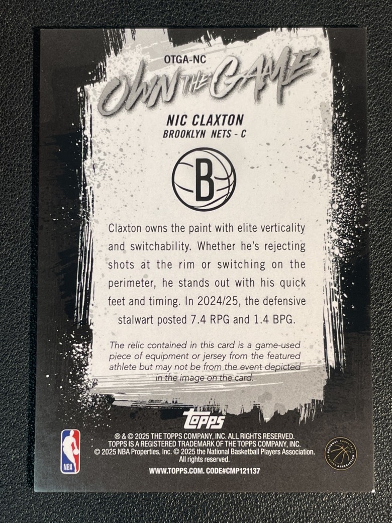 2025 Topps NBA Flagship Nic Claxton 265 尼克 克拉克斯顿 篮网 折射 金折 掌控比赛 球衣 物料 50编 微瑕如图 卡品如图 pink