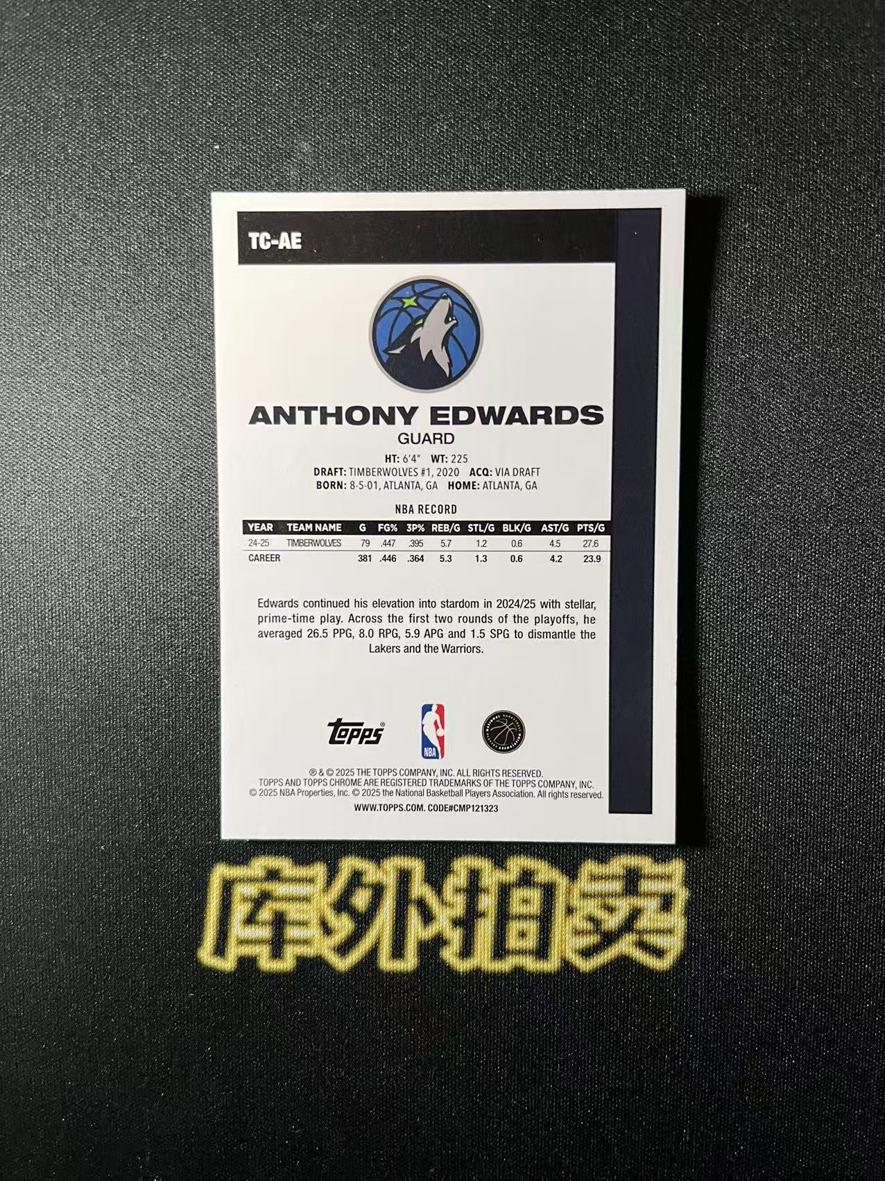 2025 Topps Flagship Anthony Edwards 森林狼 安东尼 爱德华兹 华子 旗舰系列 1980复古特卡 MOJO折 迷宫折 折射 Chrome工艺 大热 未来可期 GL
