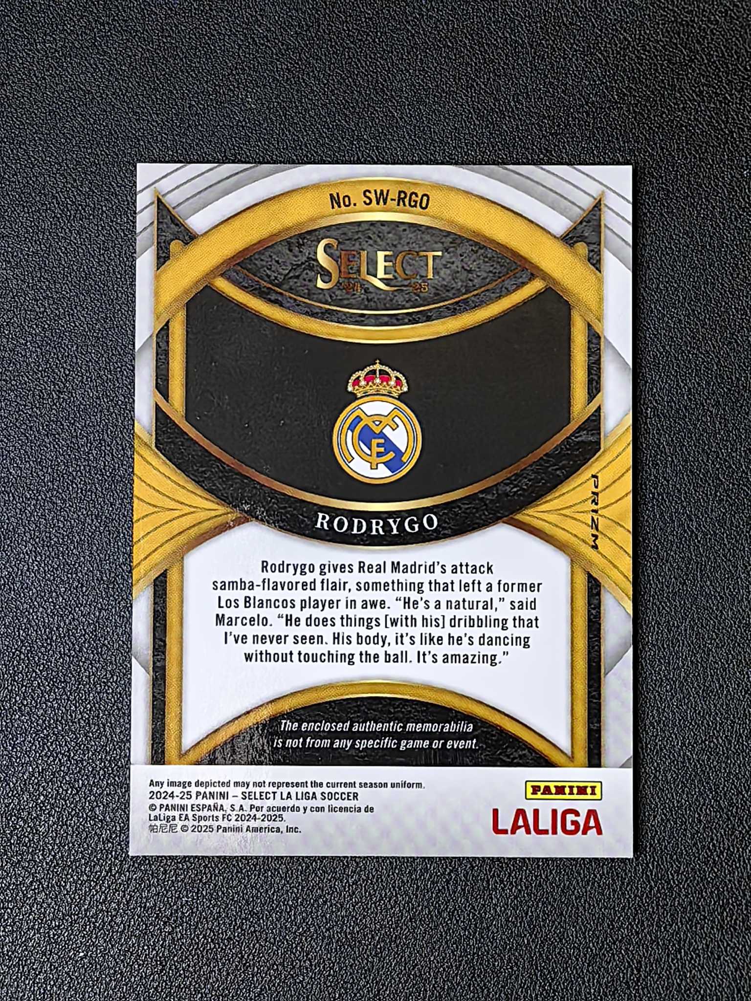 2024-25 Panini Select Rodrygo 西甲 皇家马德里 罗德里戈 球衣 物料切割 银折 折射
