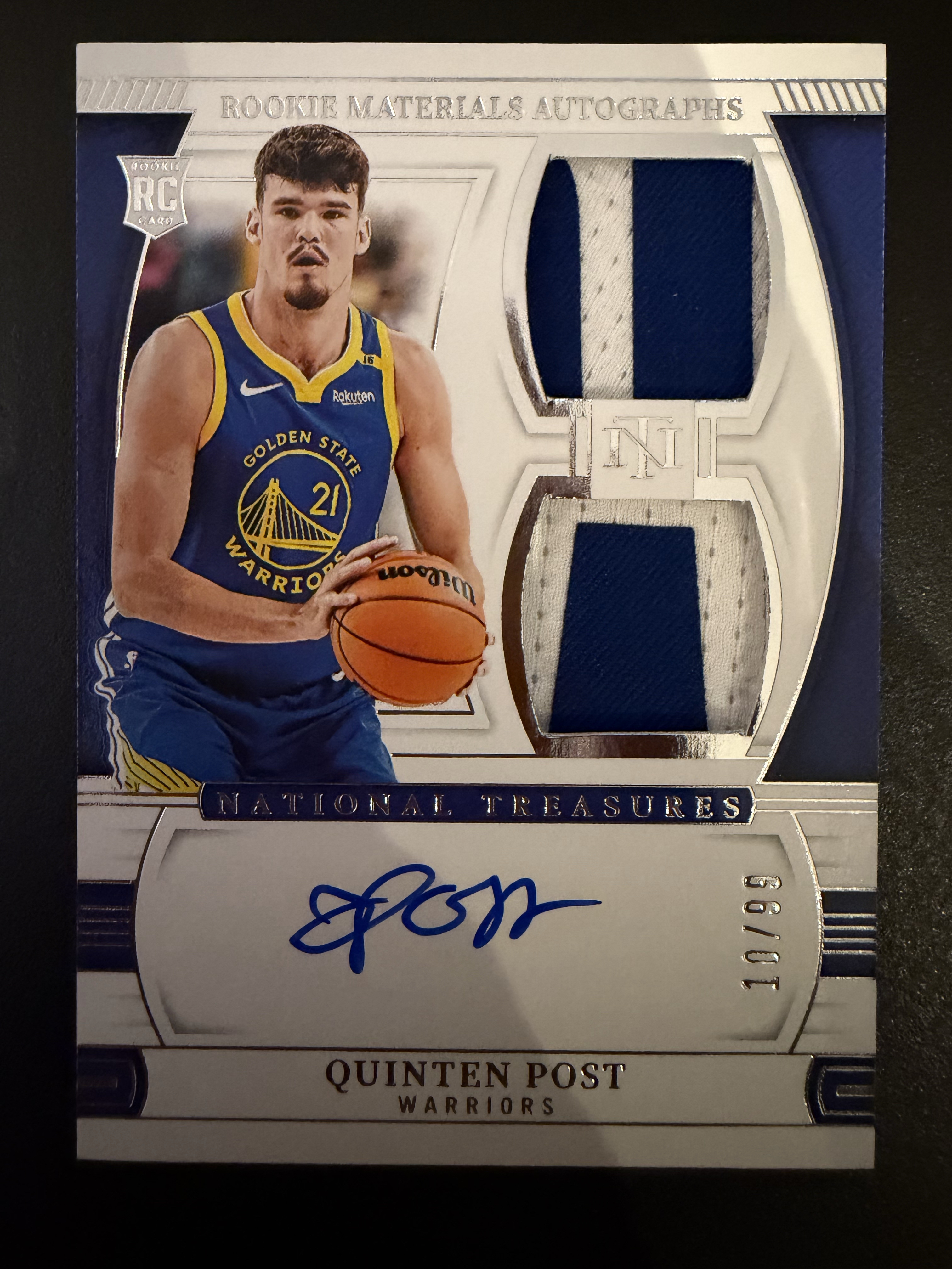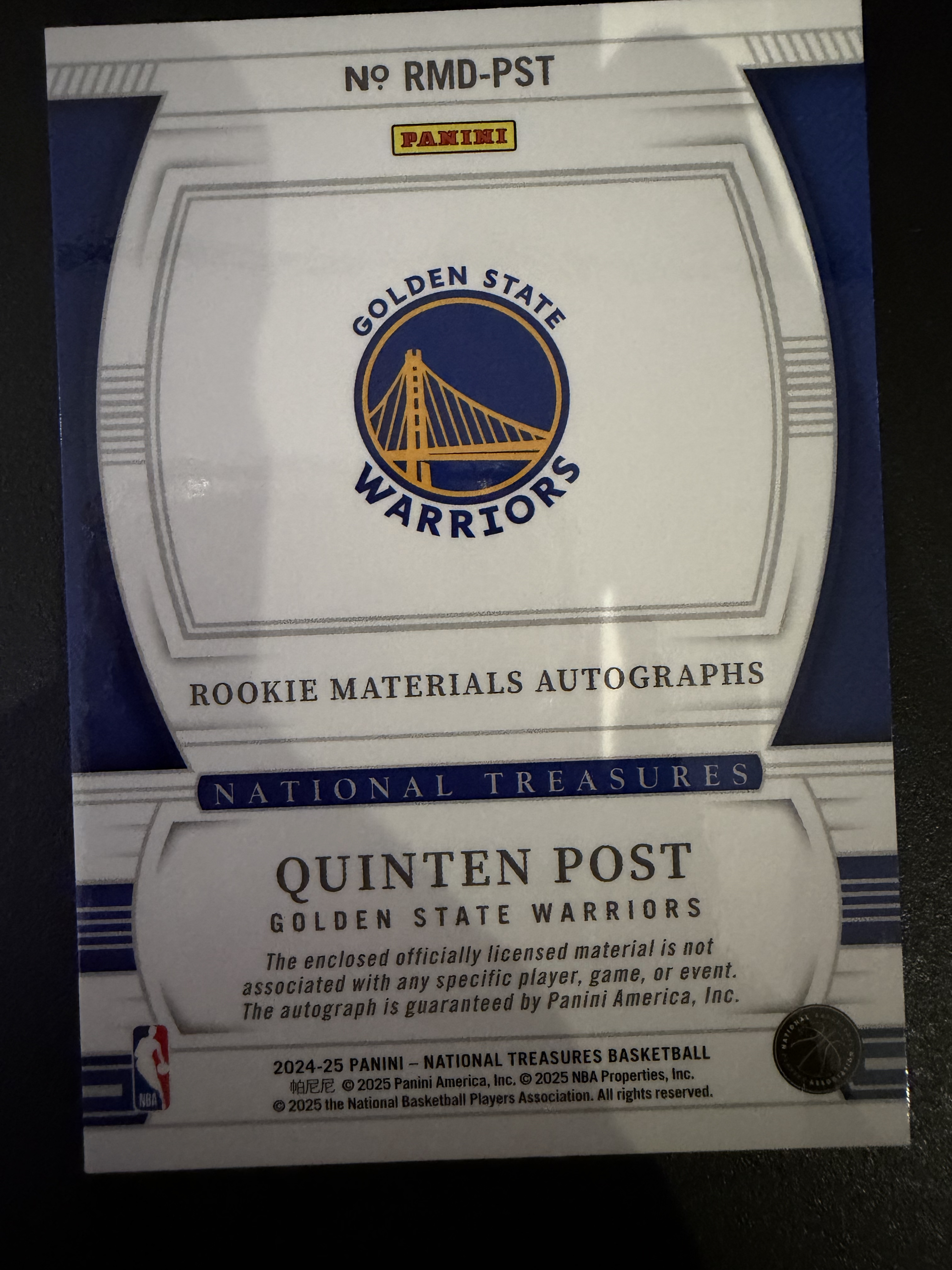 2024-25 Panini National Treasures Quinten Post RC 99编国宝勇士新秀昆汀波斯特双窗物料切割签字,卡品如图,收藏佳品,拍下后1-3天发货