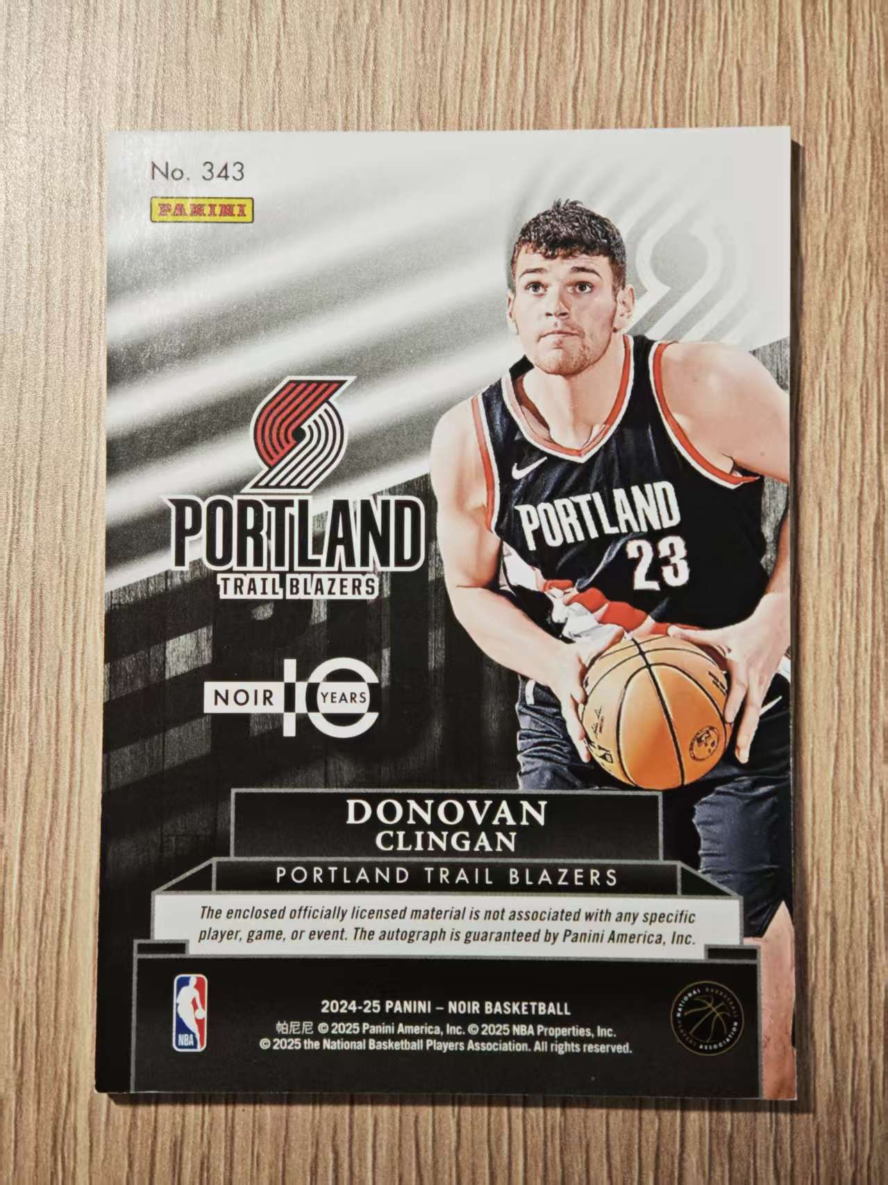 2024-25 Panini Noir Donovan Clingan RC 开拓者新秀 多诺万 克林根 /99编 noir 正rpa 三色暴力切割 新赛季数据大幅度提升 实卡好看 品墨如图