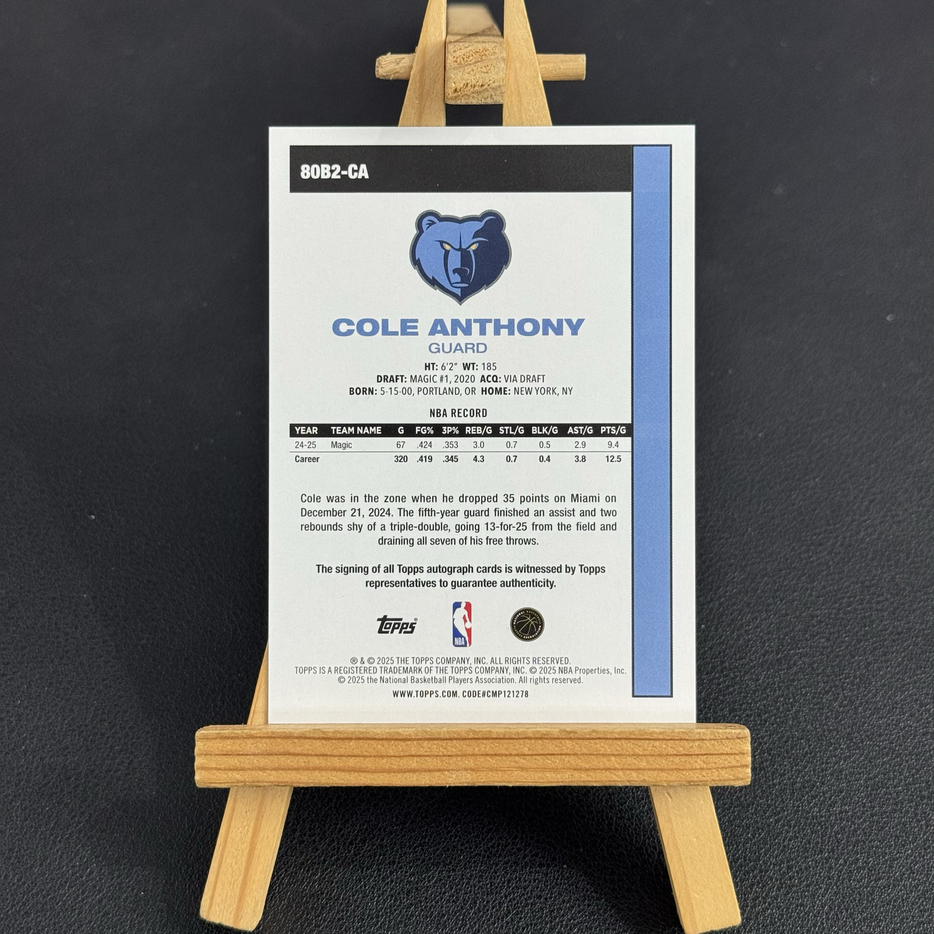 2025 Topps Flagship Basketball Cole Anthony 元年 科尔-安东尼 1989复古特卡签 /50编 金折 签字 卡签 魔术 控球后卫 卡品如图 芹泽