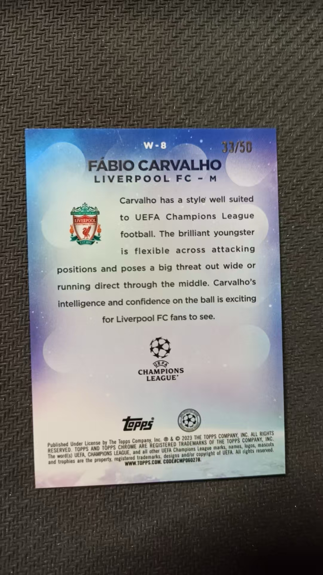 2022-23 Topps Chrome Sapphire Fábio Carvalho RC 欧冠蓝宝石 法比奥卡瓦略 50编 橙碎冰折 首编 神奇小妖特卡 利物浦新秀 微瑕如图 hx