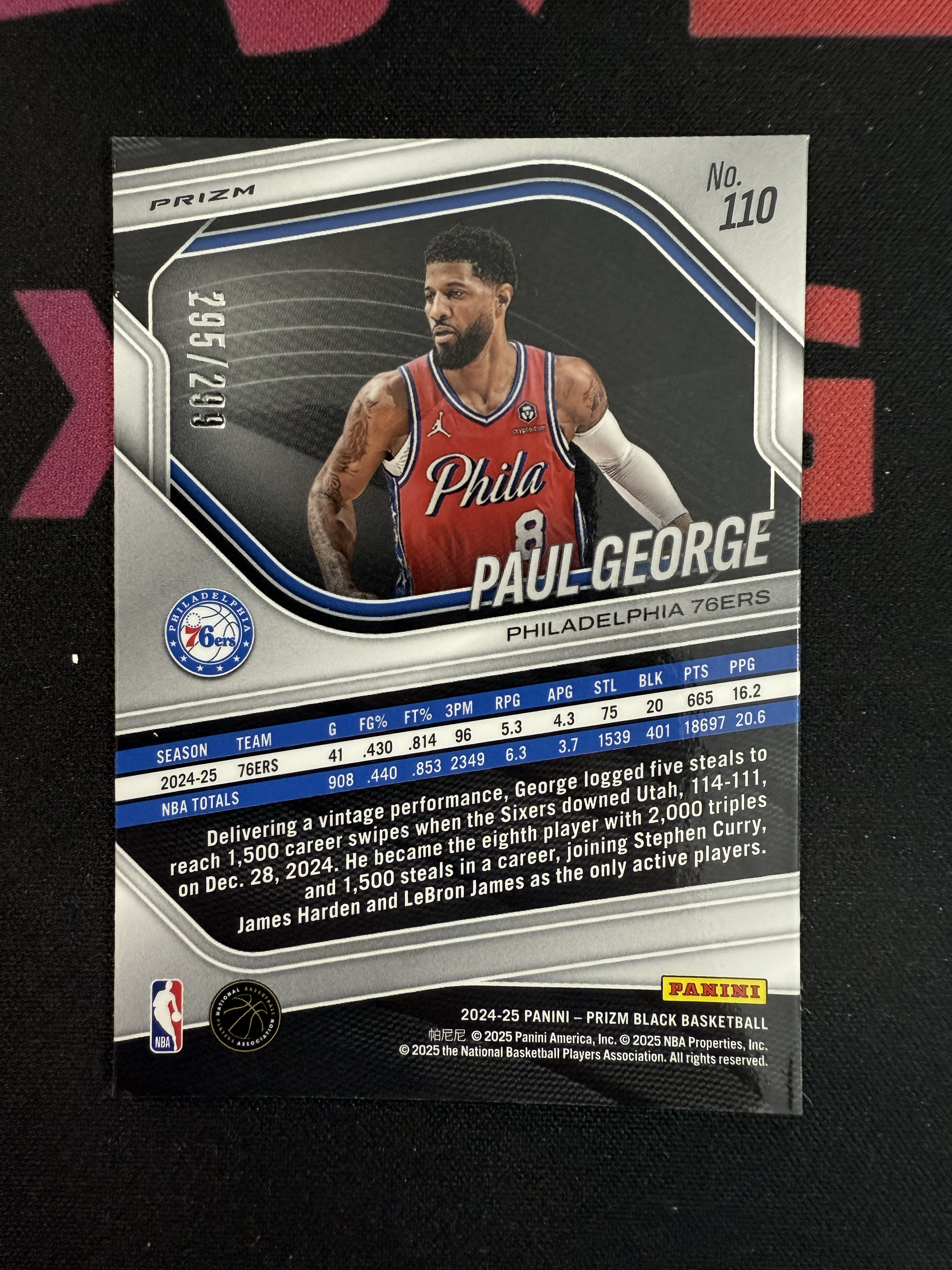2024-25 Panini Prizm Paul George 76人 保罗 乔治 泡椒 pz 红折 折射 295/299遍 BLACK 瑕疵如图 收藏必备 马哥