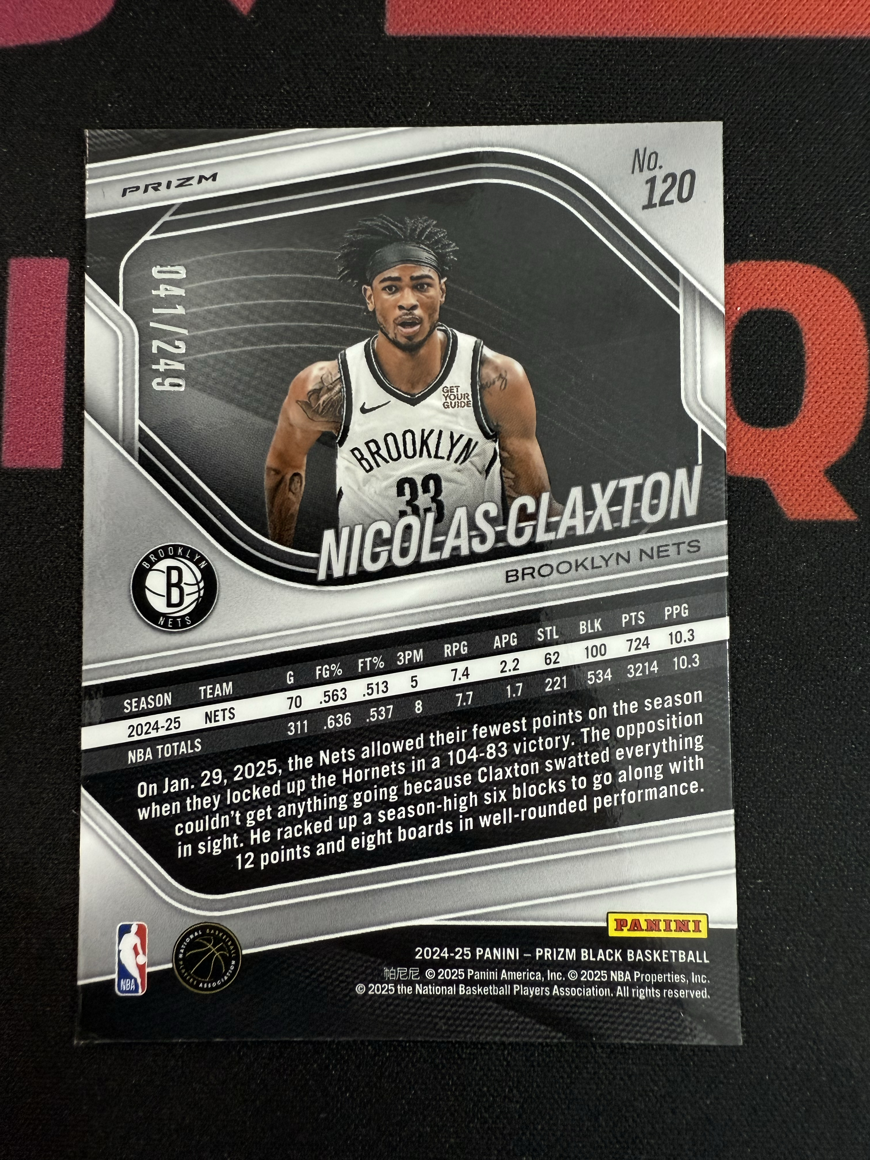 2024-25 Panini Prizm Nicolas Claxton 篮网 尼古拉斯 克拉克斯顿 pz 银折 折射 41/249遍 BLACK 瑕疵如图 收藏必备 马哥