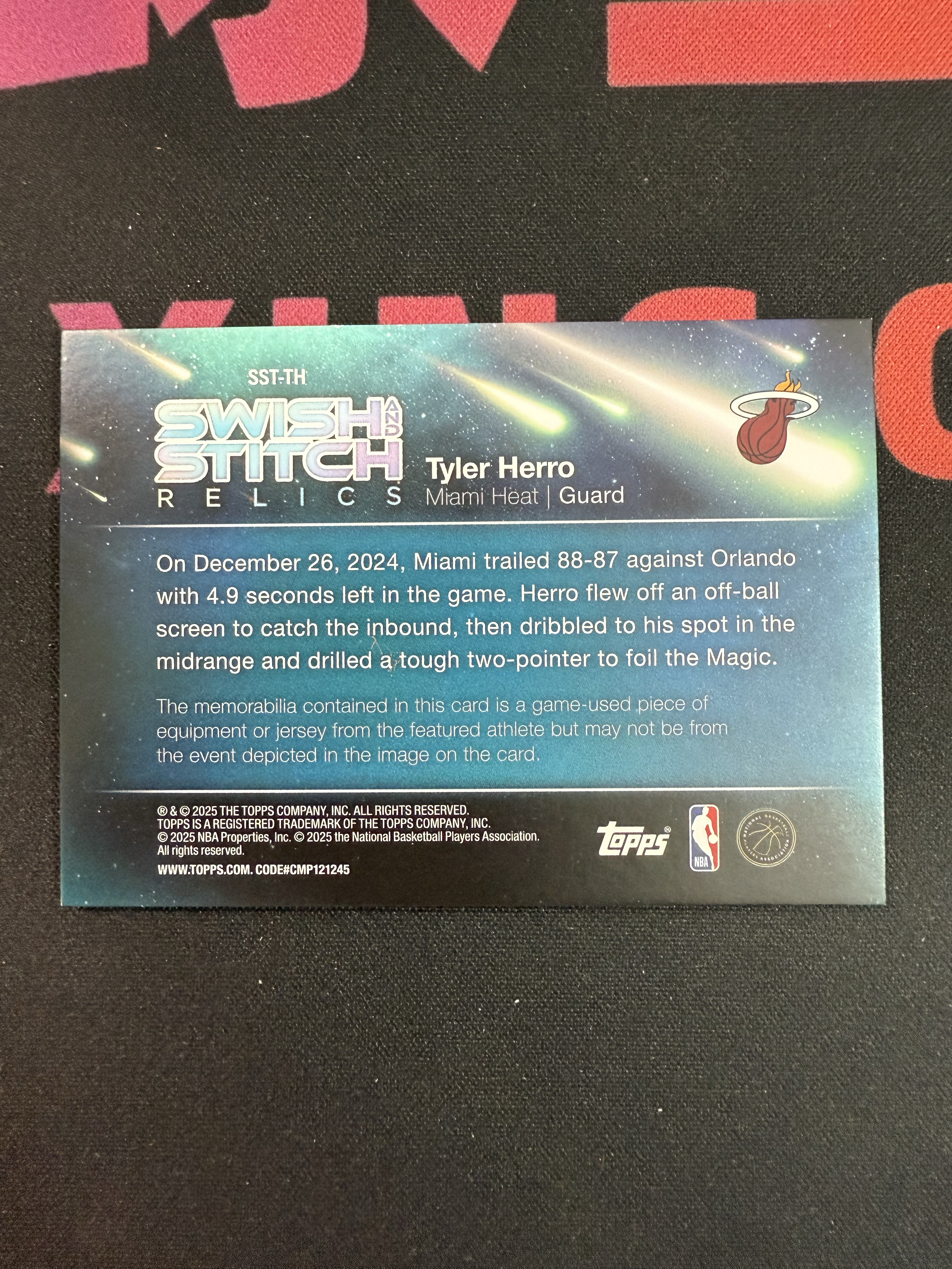 2024-25 Panini Topps/NBA Starting 5 Tyler Herro 热火 泰勒 希罗 球衣 物料 swish stitch 瑕疵如图 收藏必备 马哥