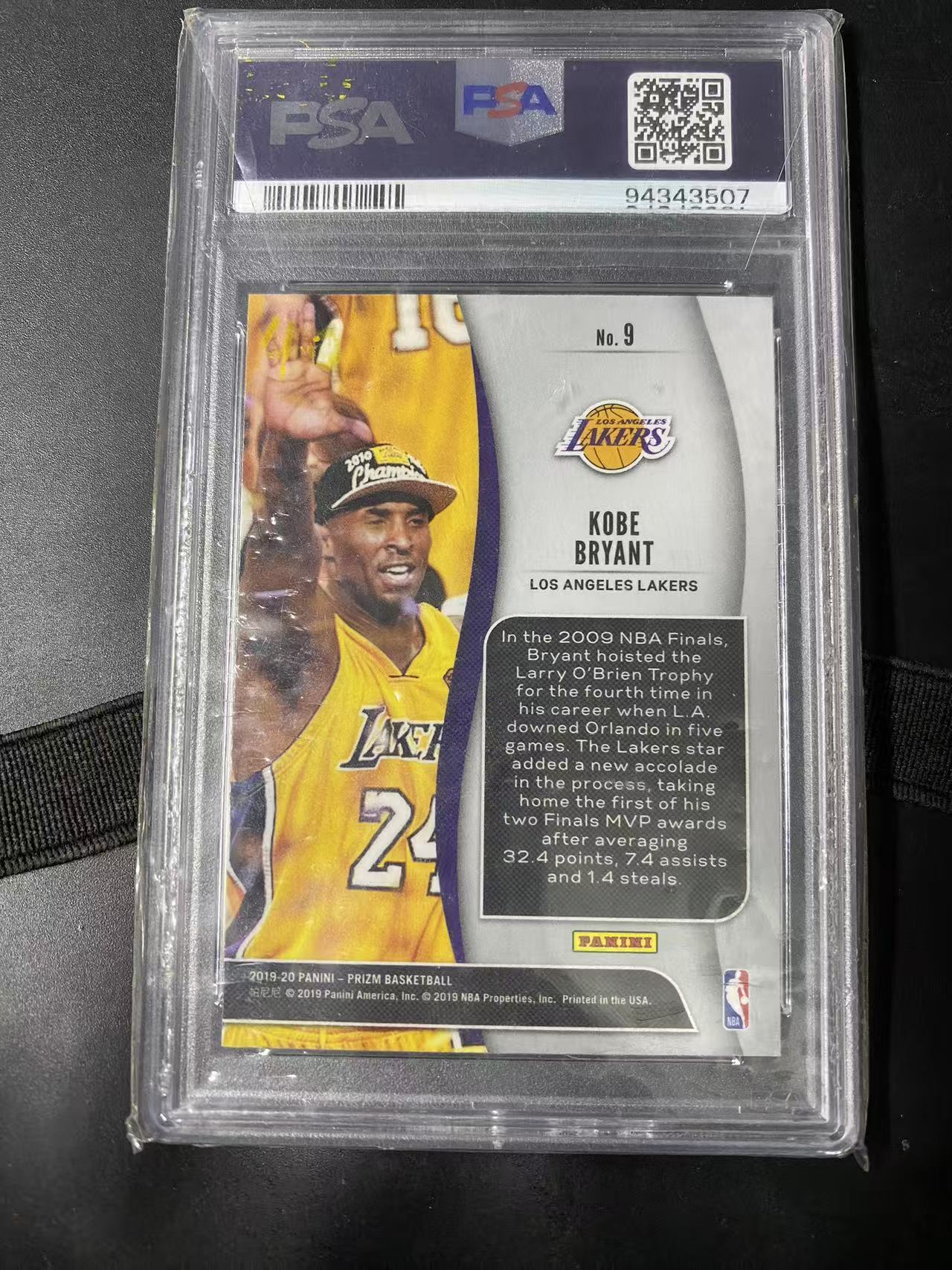 2019-20 Panini Prizm Kobe Bryant 湖人 小飞侠 黑曼巴 科比布莱恩特 总冠军特卡 PSA9分评级 卡品如图 微瑕 人间