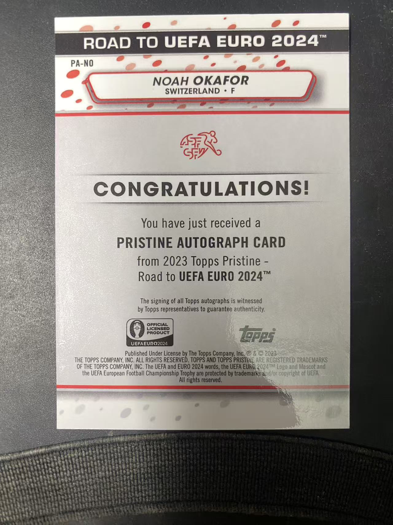 2023 Topps Pristine Noah Okafor 太古系列 欧洲杯 国家队 瑞士 萨尔斯堡红牛 诺亚 奥卡福 签字 折射 卡品如图 微瑕