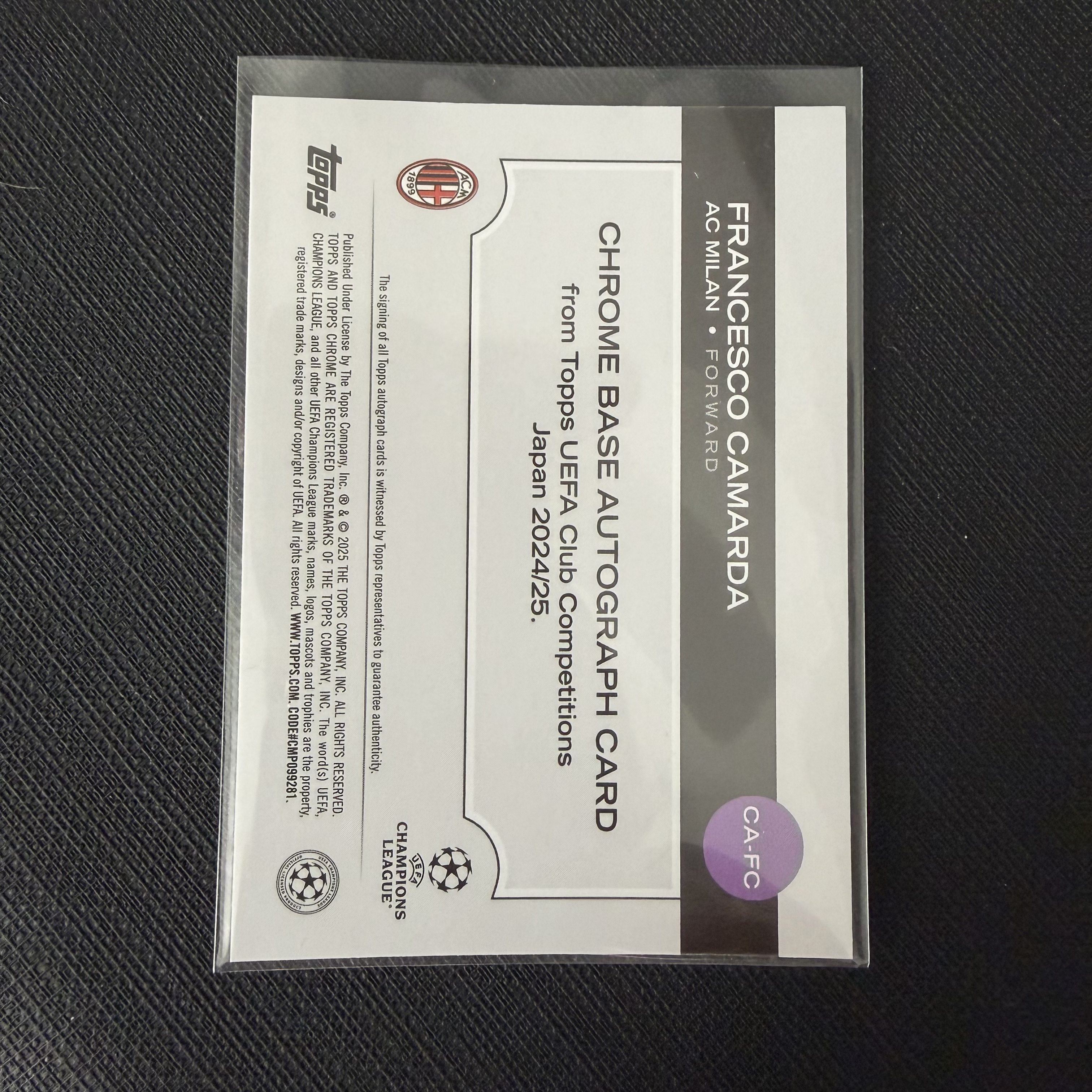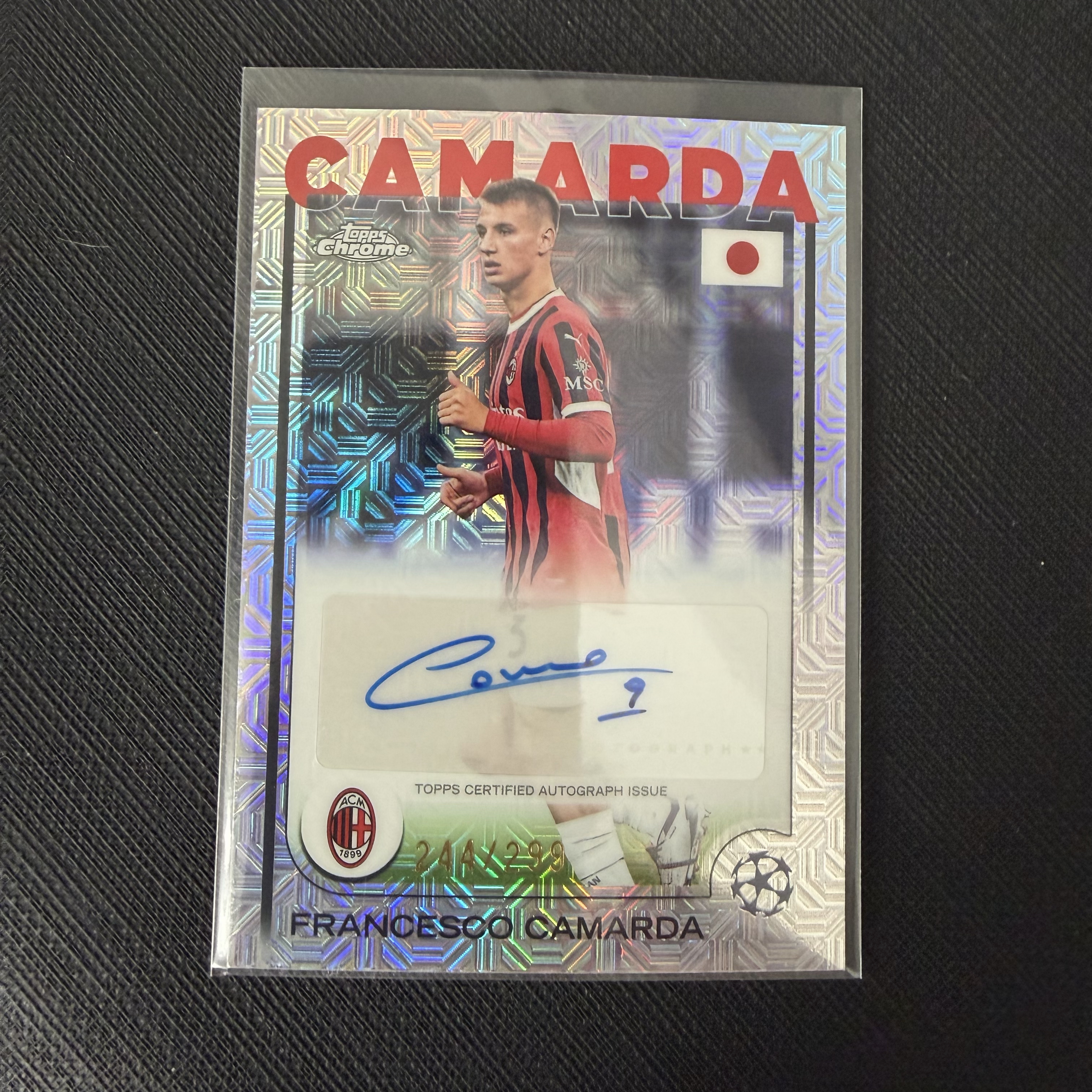 2024-25 Topps Chrome Francesco Camarda 欧冠TC 日版 卡马尔达 AC米兰 签字 /299编 银mojo折 【默认微瑕一日一快递 不累计 不发到付】卡vv