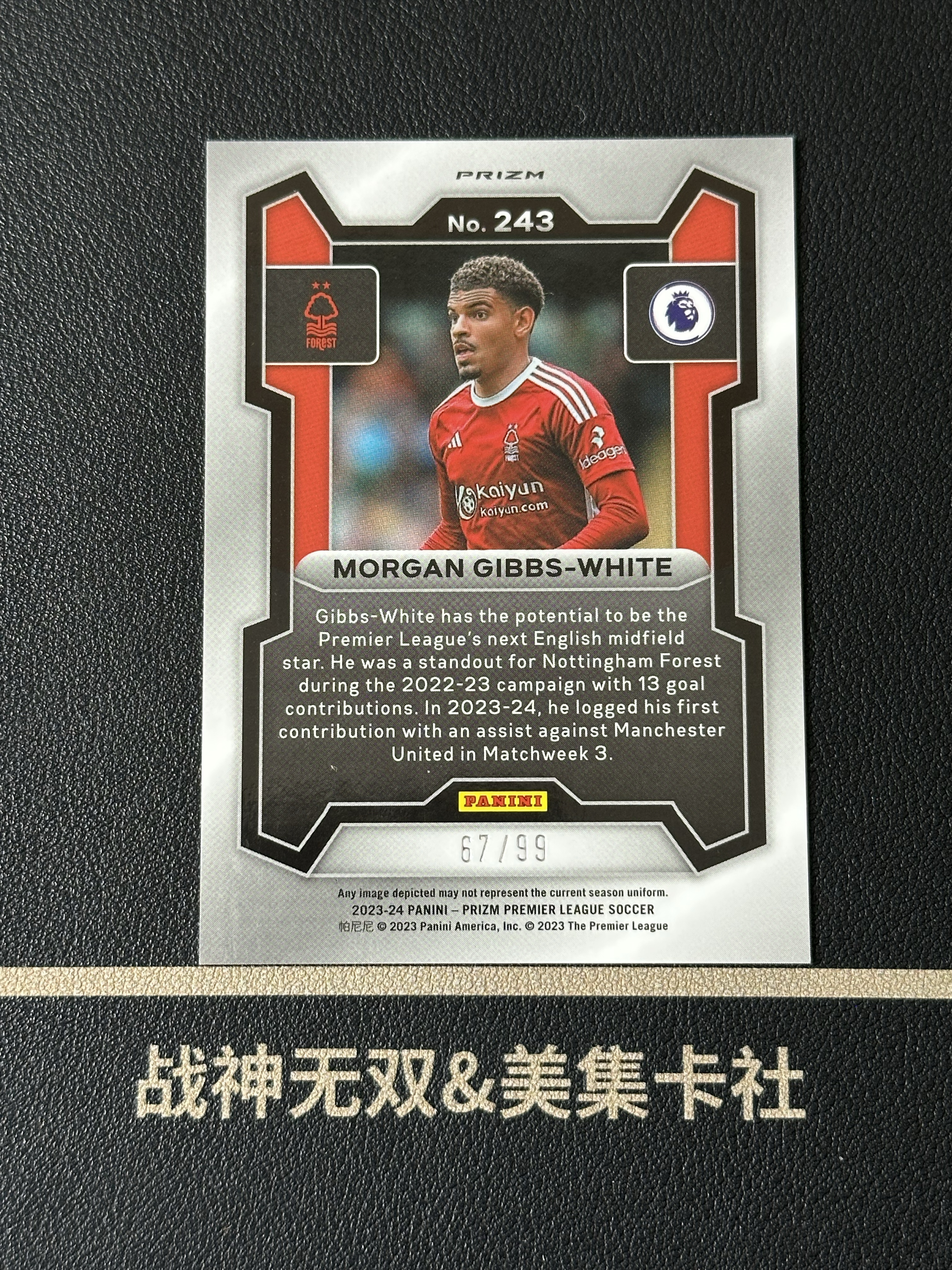 2023-24 Panini Prizm Morgan Gibbs White 英超PZ 诺丁汉森林 摩根 吉布斯 怀特 蓝泡泡折 99编 战神无双(#11.25magit)