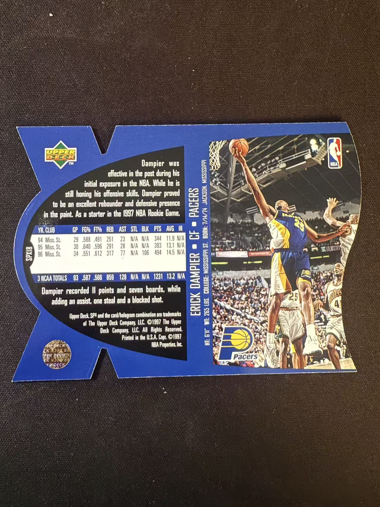 1997 Upper Deck SPx Erick Dampier 【大锦拍卖】步行者 埃里克 丹皮尔 UD 小飞机 异形 卡品如图(星球)