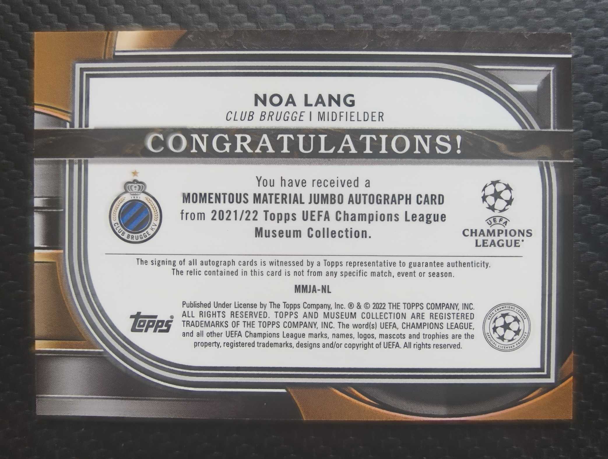 2022 Topps 博物馆 Noa Lang 欧冠 荷兰 布鲁日 埃因霍温 那不勒斯 诺阿朗 朗哥 150编 折射  墨迹完美 签字 签名 物料签 大窗 物料 球衣 切割 实卡精美 卡品见图 阅读描述