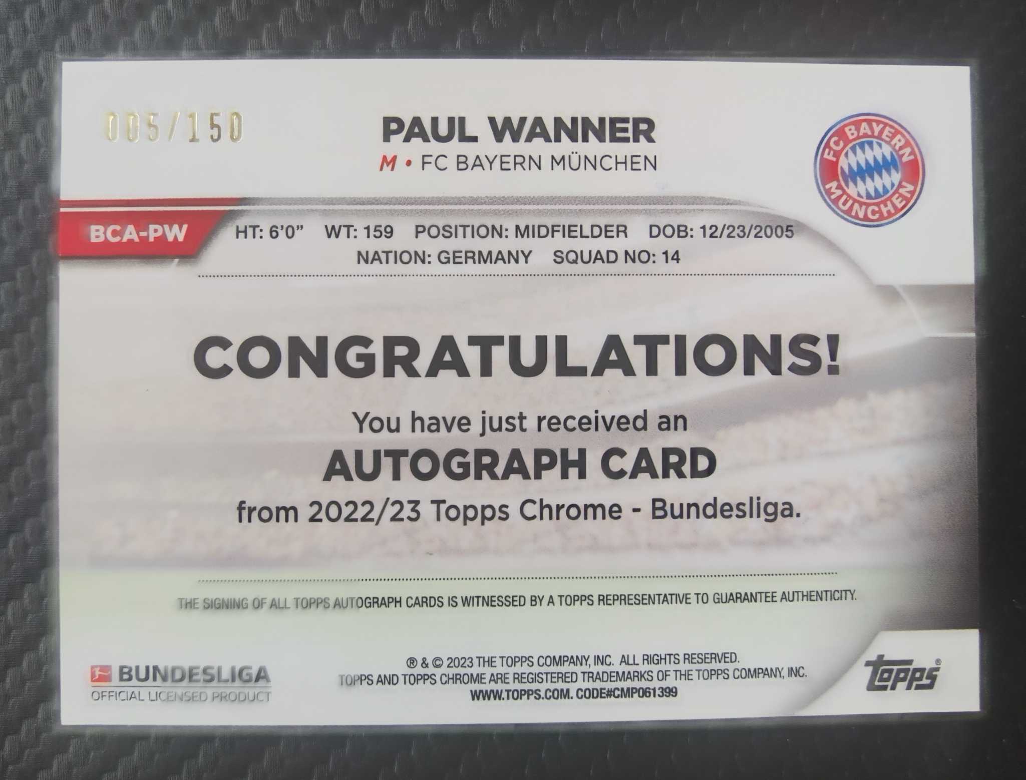 2023 Topps Chrome Tom Bischof 德甲 TC 德国 拜仁慕尼黑 太孙 保罗 万纳 阿贾克斯 150编 粉折 墨迹完美 签字 签名 实卡精美 卡品见图 阅读描述