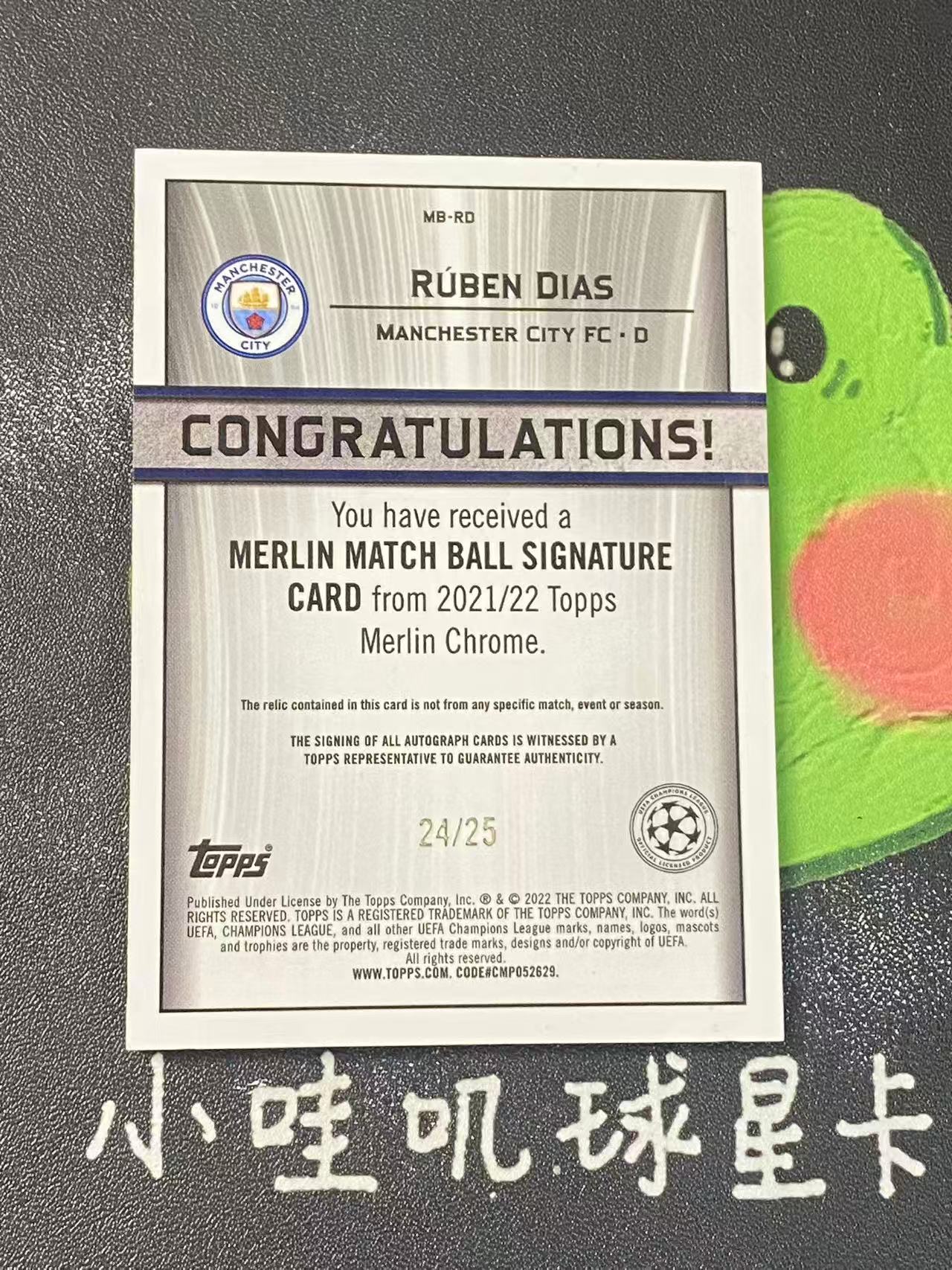 2022 Topps Merlin Ruben Dias 欧冠 梅林 曼城 鲁本 迪亚斯 25编 球皮 签字 物料 暴力切割 物料签 微瑕如图【ZYP代拍】LYH灰机