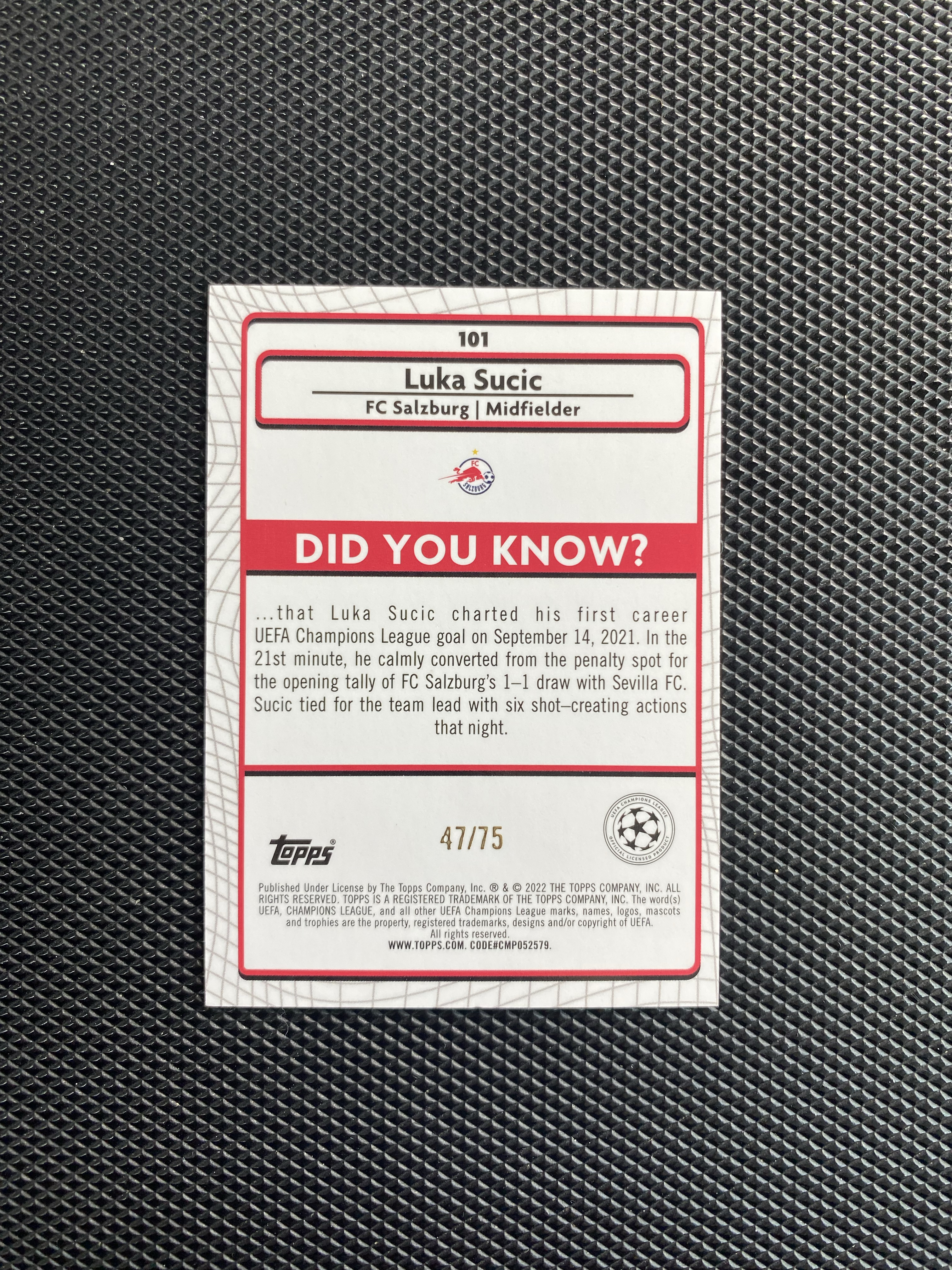 【深情拍卖】2022 Topps Merlin 梅林 欧冠 Luka Sucic 萨尔茨堡红牛 新秀RC 苏西奇 75编 蓝折 卡品如图 #js277#