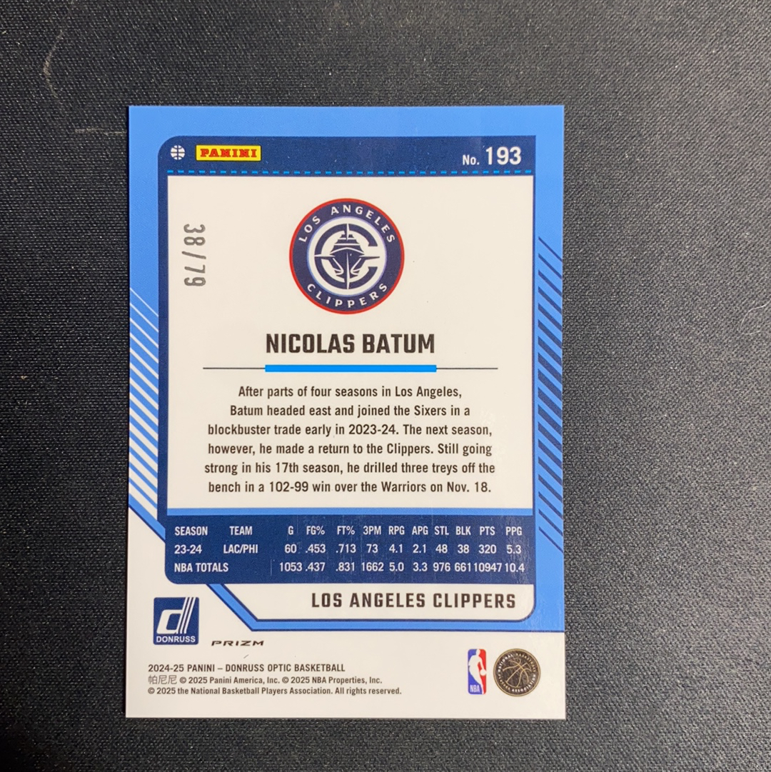 2024-25 Panini Optic Nicolas Batum 快船 巴通姆 79编 卡品如图 空白