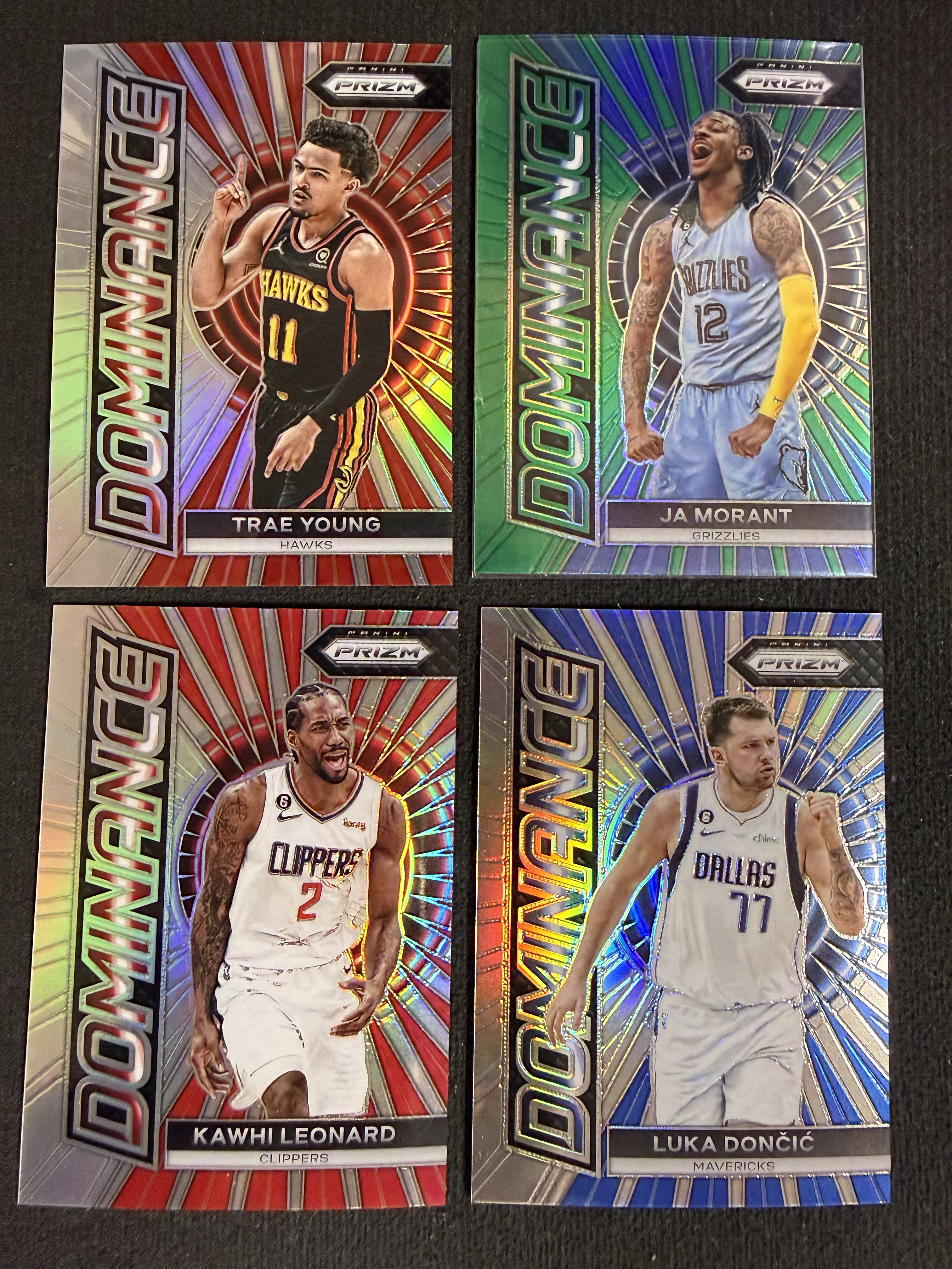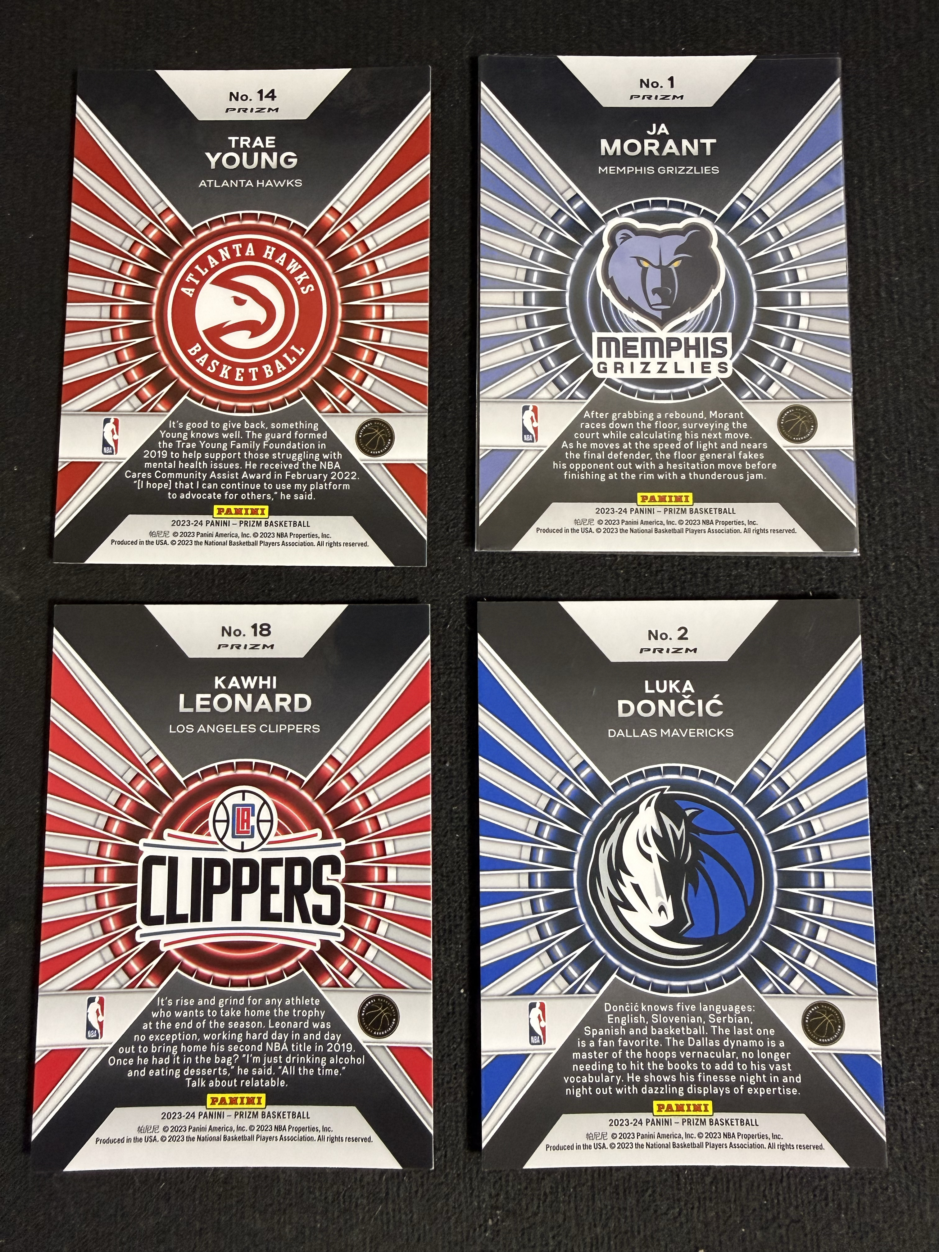 2023-24 Panini Prizm Luka Doncic Pz 卢卡 东契奇 & 雷昂纳德 & 莫兰特 & 特雷 杨 四人 Dominance特卡 银折 / 绿折 lot (飞哥)