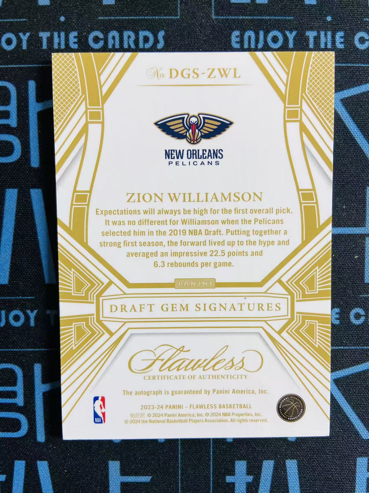【扒卡拍卖】【拍前请看描述】2023-24 Panini Flawless Zion Williams 手提 锡安 威廉森 胖虎 鹈鹕 签字 卡签 状元 /25编 DGS 新秀选图 银平行 瑕疵如图 投资收藏必备 青蛙1201BK30