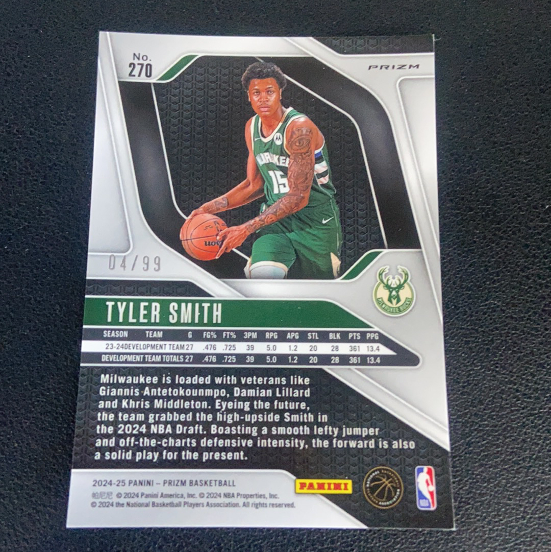 2024-25 Panini Prizm Tyler Smith RC PZ 雄鹿 新秀 泰勒史密斯 蓝脉冲折 99编 折射 瑕疵如图 专收必备