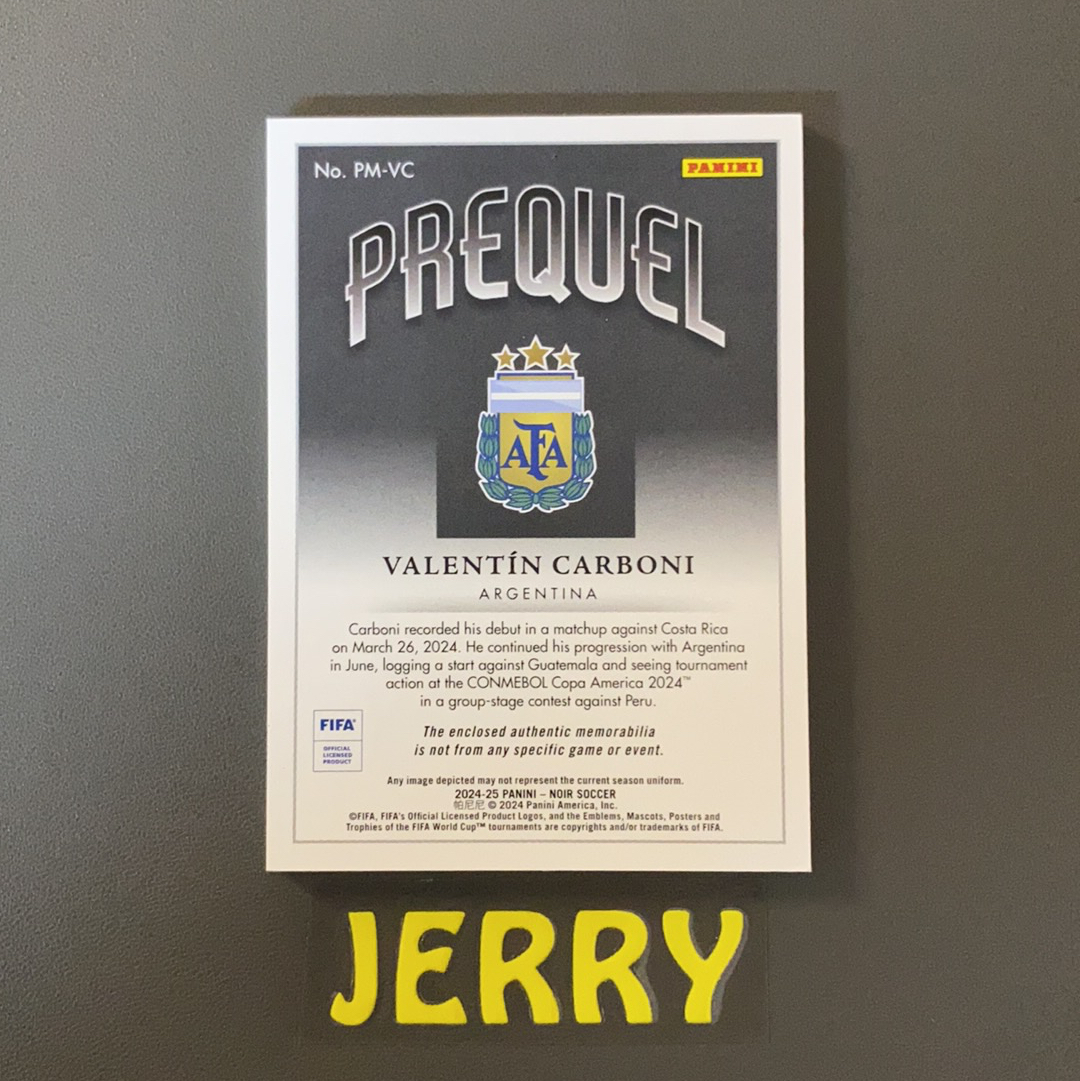 2024-25 Panini Noir Valentín Carboni 诺尔 阿根廷 巴伦廷 卡尔博尼 54/65编 小窗 球衣 双色物料 切割 卡品如图【chow】