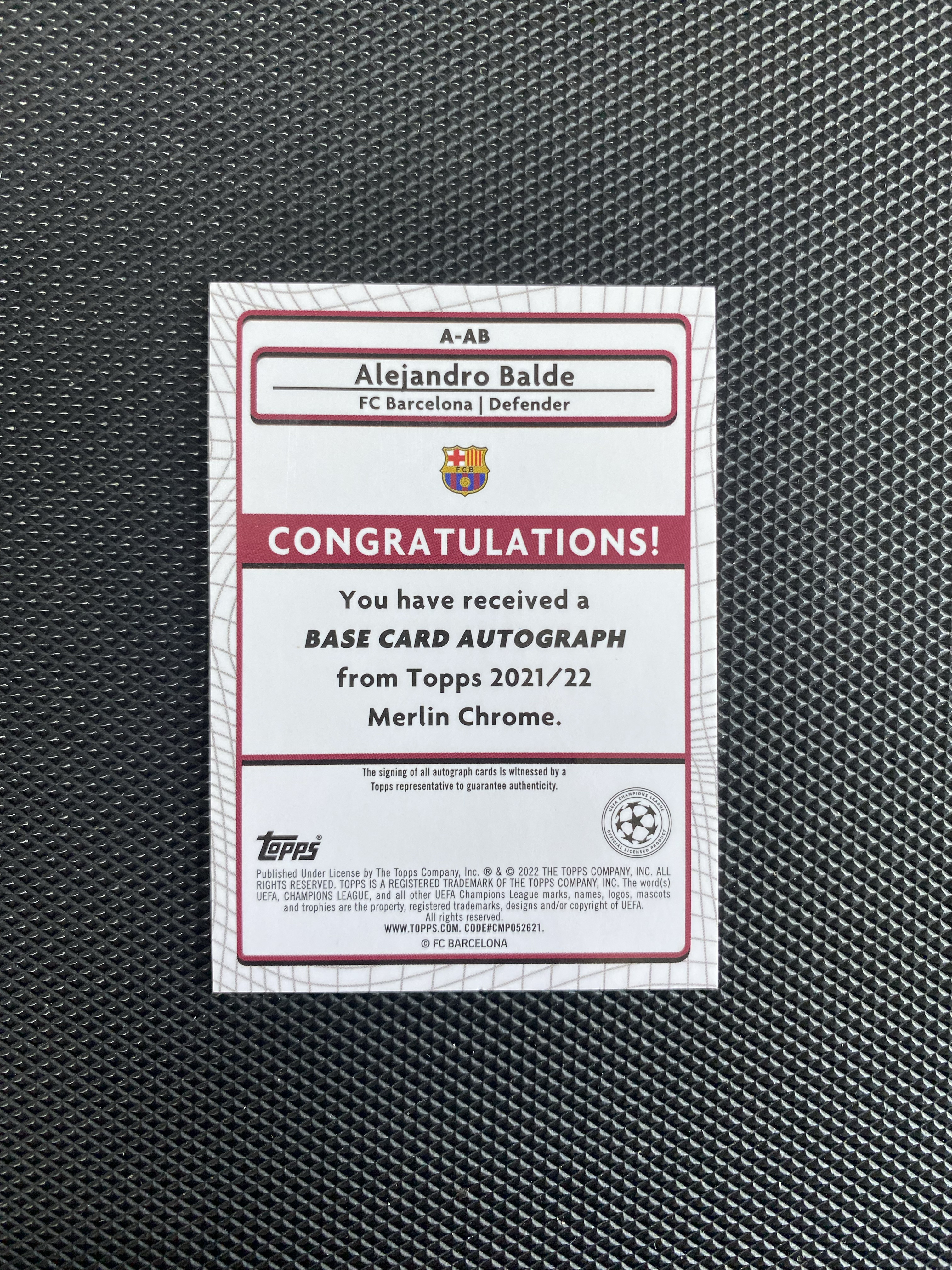 【深情拍卖】2022 Topps Merlin 梅林 欧冠 Alejandro Balde 西班牙 巴萨 新秀RC 巴尔德 签字 银折 卡品如图 #js277#