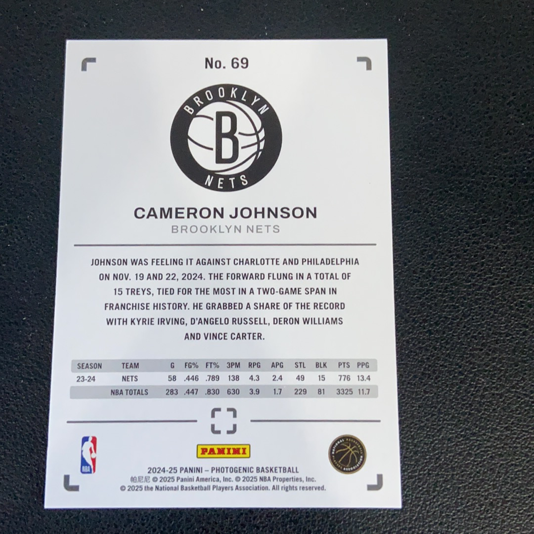 2024-25 Panini Photogenic 上镜 Cameron Johnson 卡梅隆 约翰逊 黄忠 篮网 06/10编 金折 收藏必备 瑕疵如图