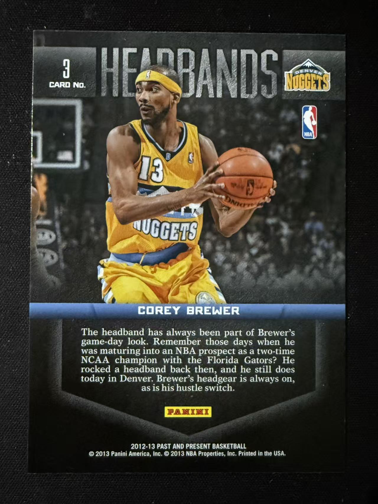 2012-13 Panini Past and Present Corey Brewer 【大锦拍卖】掘金 科里 布鲁尔 Headrands 大头 特卡 卡品如图(星球)